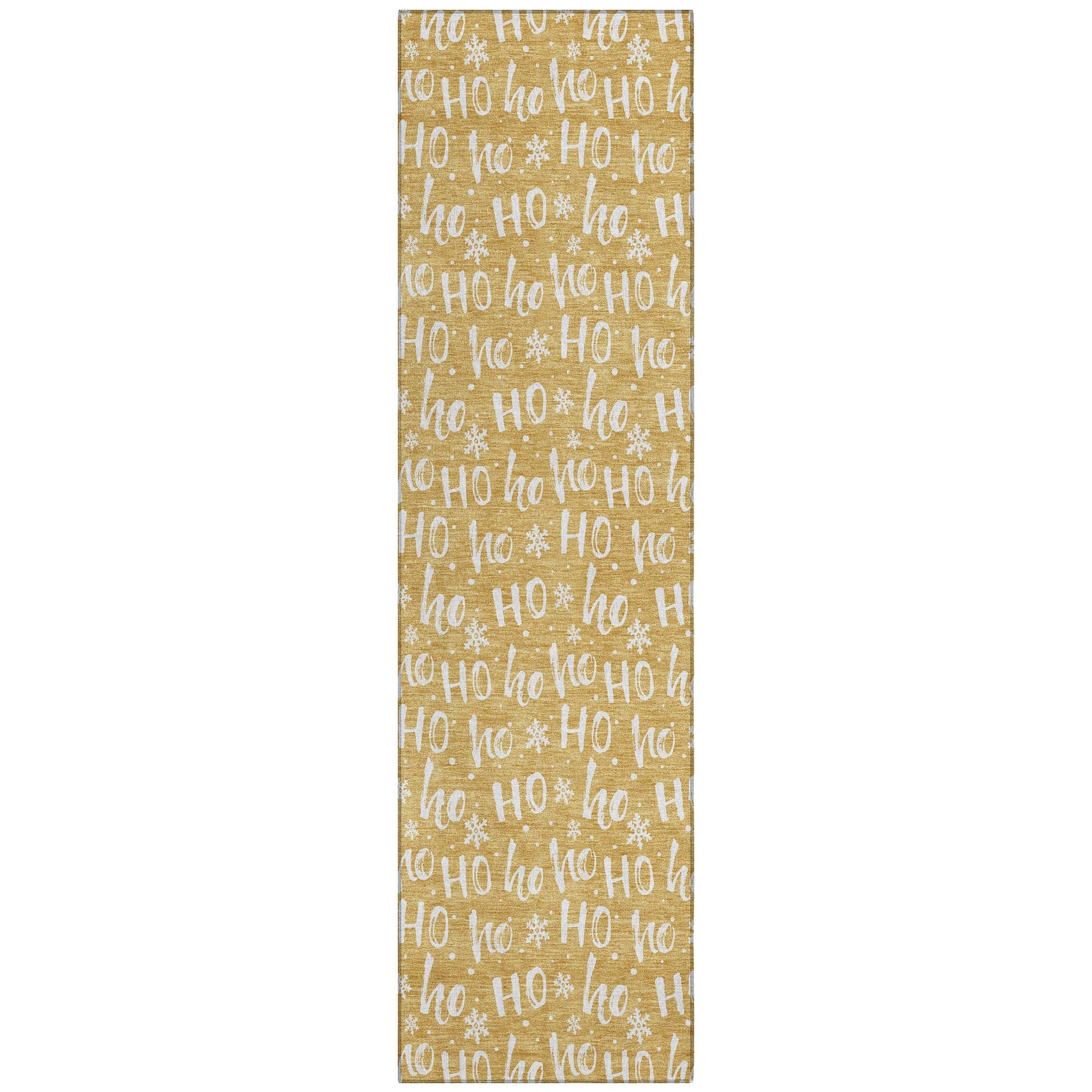 The Paelon Gold Washable Rug is a delightful addition to any home, bringing a festive spirit with its "Ho Ho Ho" and snowflake design. This rug effortlessly complements both classic and modern decor, making it a versatile choice for seasonal decorating. Crafted for both indoor and outdoor use, its UV-stabilized material ensures it retains its vibrant gold hues even in sunlight. Designed with convenience in mind, the rug's ultra-thin construction allows for easy cleaning, whether you're tidying up after a holiday gathering or simply freshening up your space.