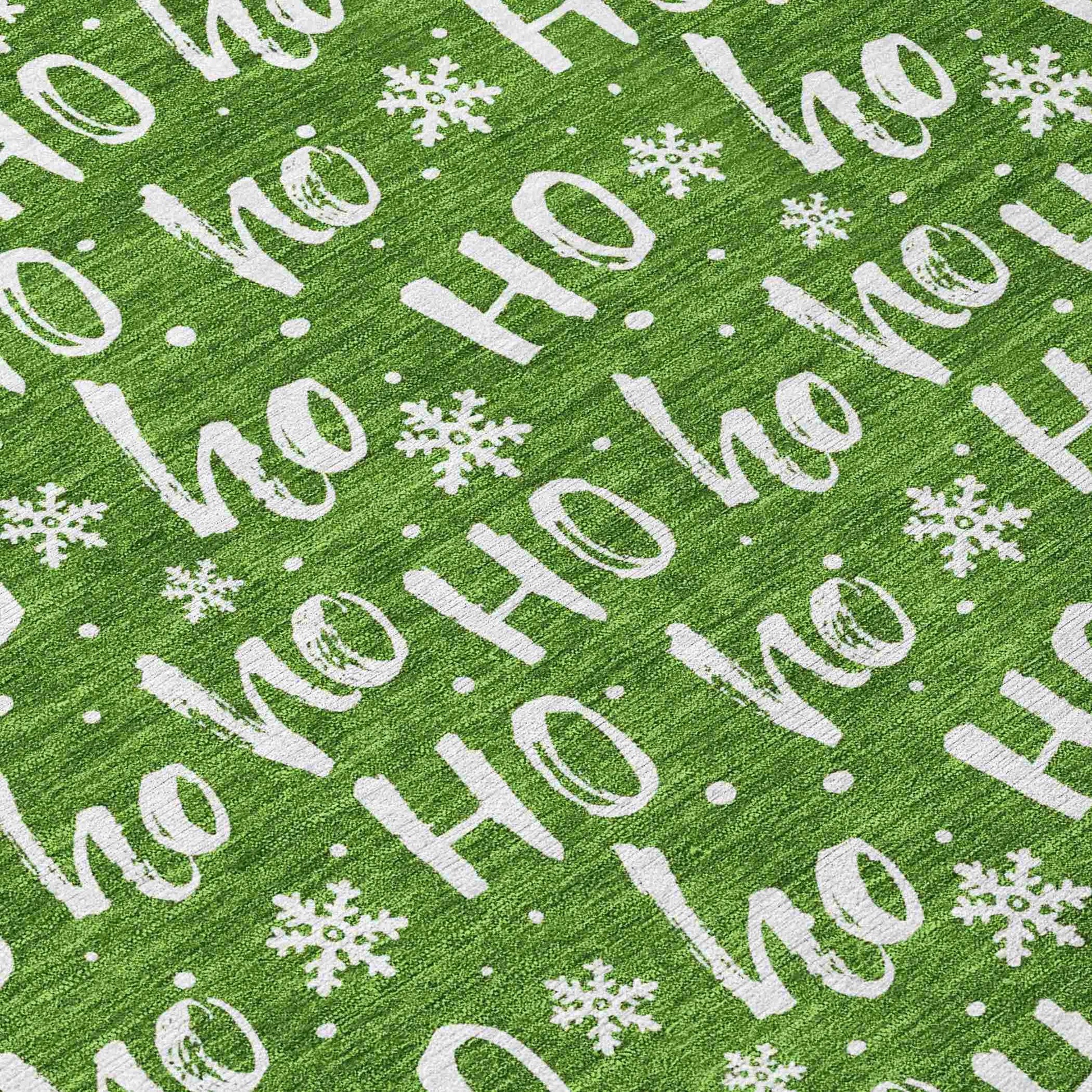 Bring a touch of holiday magic to your home with this festive rug. Adorned with playful "Ho Ho Ho" words and charming snowflakes, it creates a joyful atmosphere, perfect for celebrating the season. Its green color complements a variety of decor styles, making it suitable for both classic and modern spaces. Whether used indoors or outdoors, this rug's versatile design ensures it fits seamlessly into any setting, adding a cheerful accent to your home.