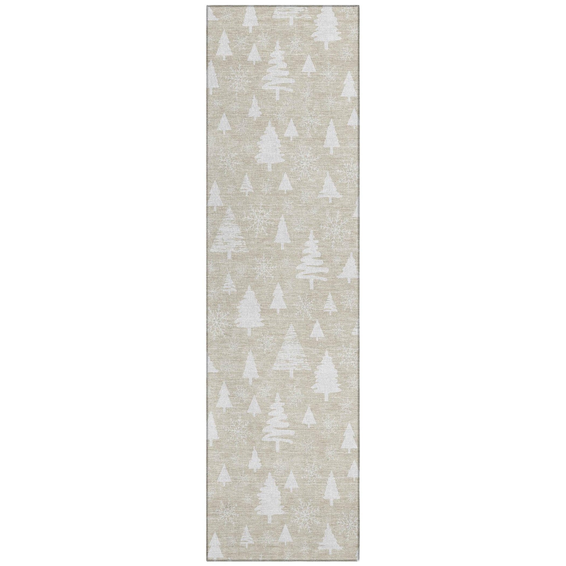 Embrace the festive spirit with this rug that features charming small trees and snowflakes, making it a perfect addition for the holiday season. Its transitional style blends seamlessly into modern and traditional settings, adding a touch of holiday warmth without dominating the décor. Whether placed indoors or outdoors, this rug's design offers versatility that complements various interior styles, creating a welcoming atmosphere for your home.