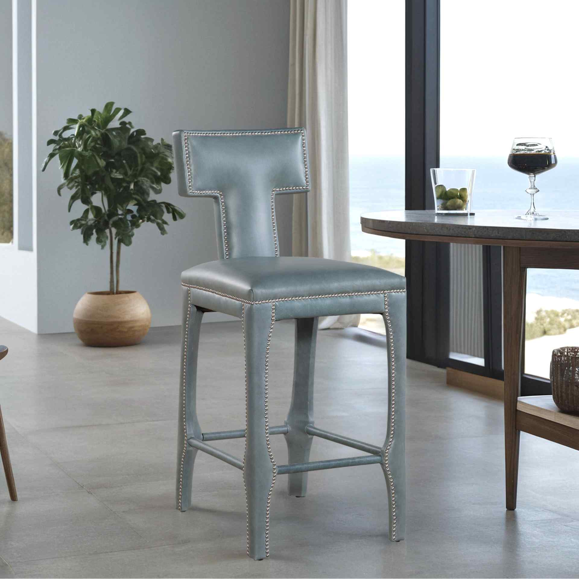 Elevate your home bar or kitchen counter with the stylish Paris Barstool, available in three elegant finishes: Zion Mist, and Zion Slate. Each barstool is crafted with top grain leather, offering durability and a luxurious look. The sleek design, highlighted by unique nailhead trim and elegant details, makes each piece an eye-catching addition to any space. Whether you're looking for a rich, classic tone or a more modern aesthetic, the Paris Barstool complements various decor styles, enhancing your home with sophistication and comfort.