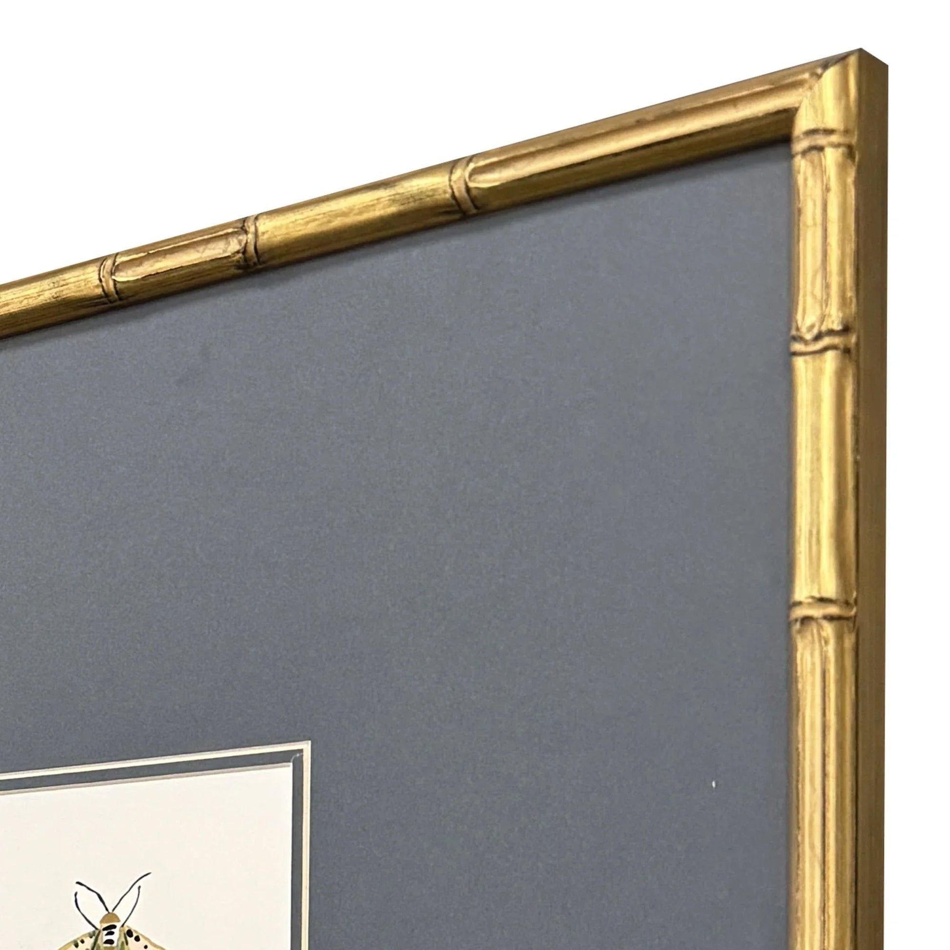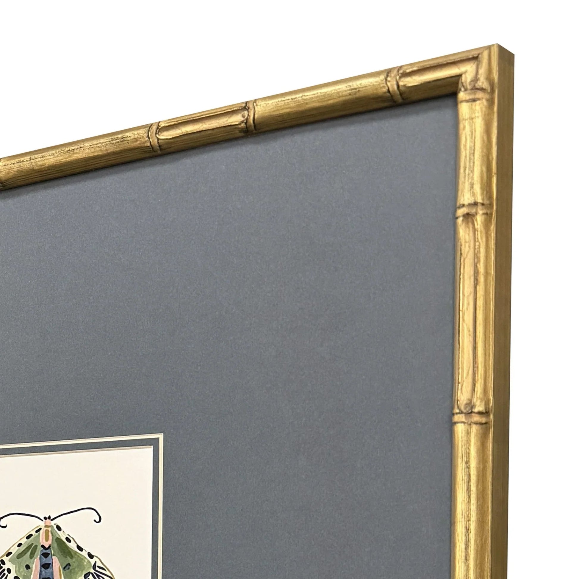 Bring a touch of nature into your space with this stunning art set. The Pastel Moths I and II S/3 Antique Gold Framed Wall Art Set features delicate moth studies rendered in soothing pastel colors. Each piece is matted in a calming ocean blue, beautifully highlighted by an antique gold frame with a bamboo pattern embossing. These art pieces add an elegant and tranquil feel to any room, making them perfect for living rooms, bedrooms, or home offices.