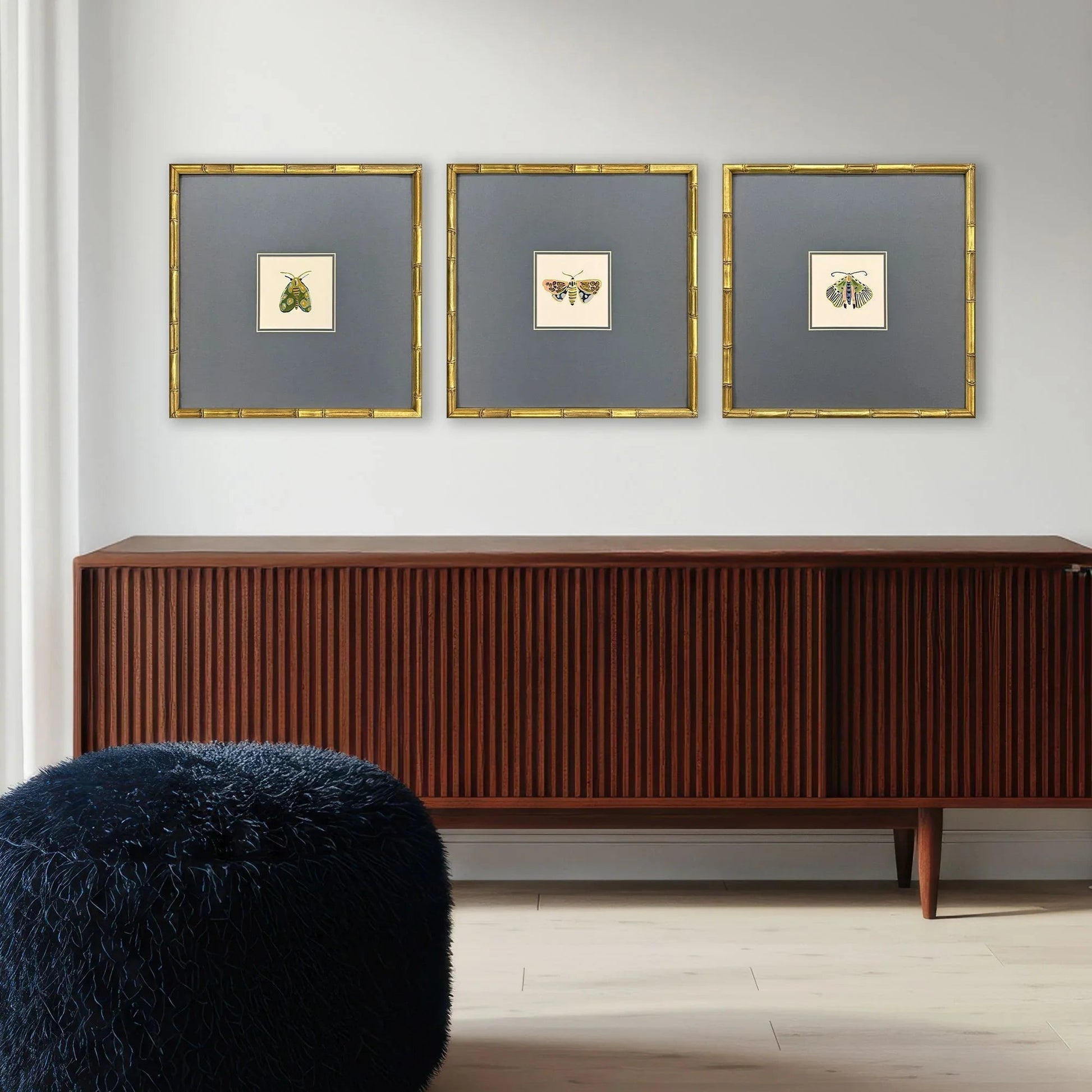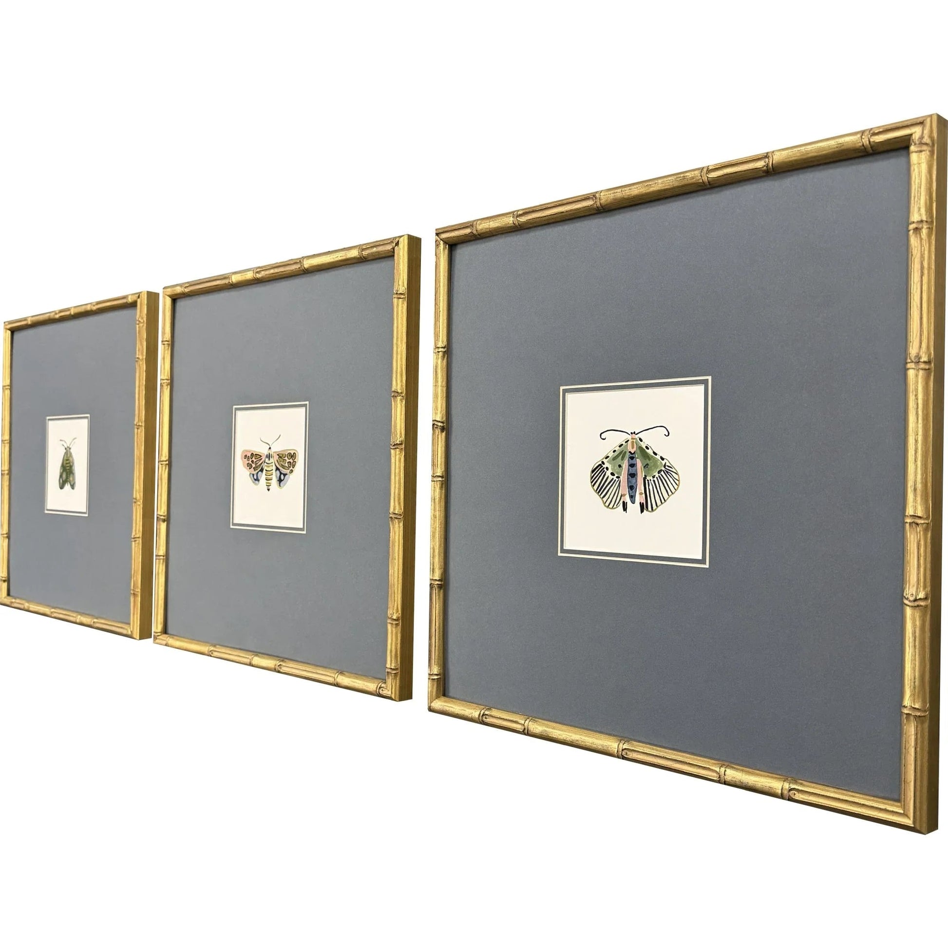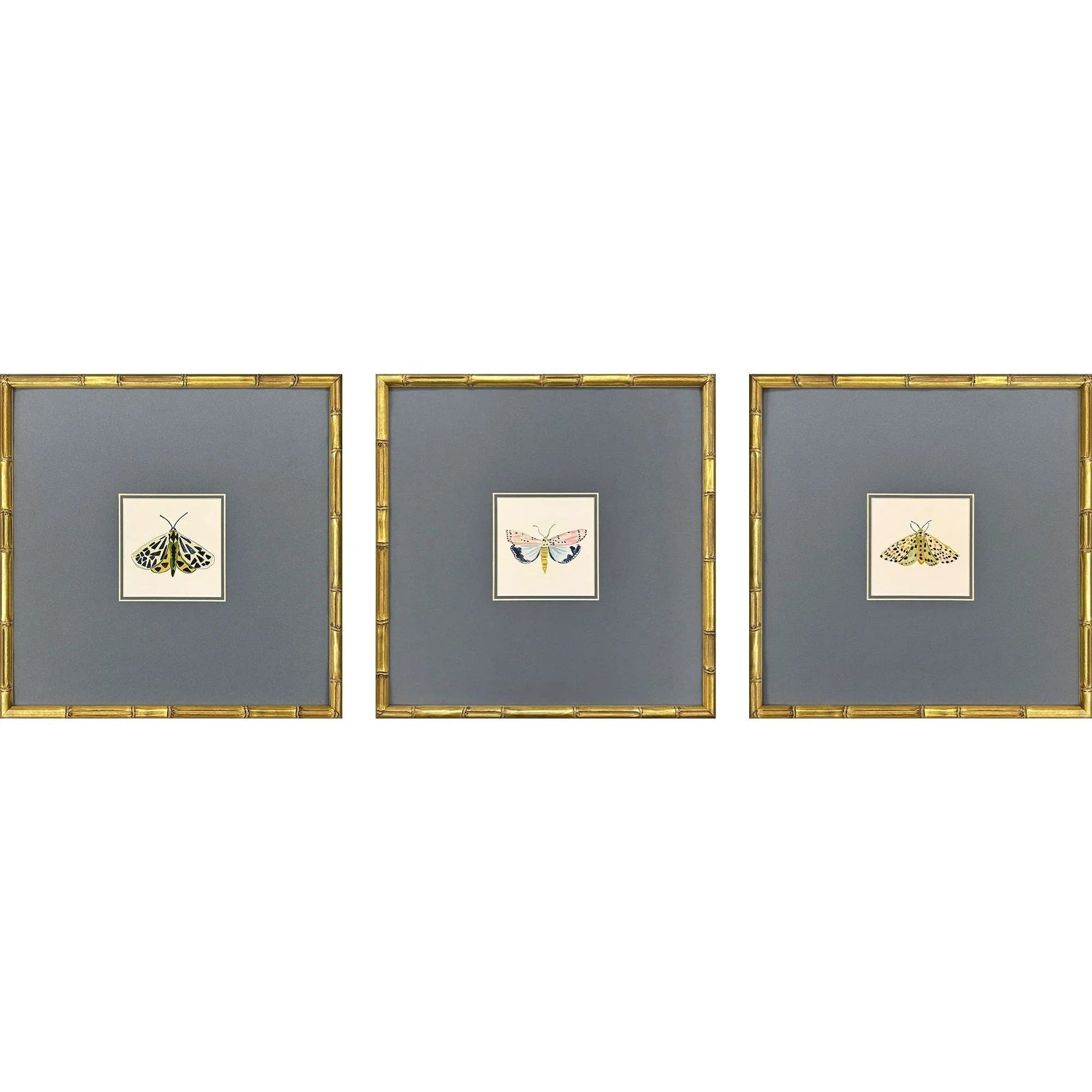 Pastel Moths S/3 Antique Gold Framed Wall Art Set Features: