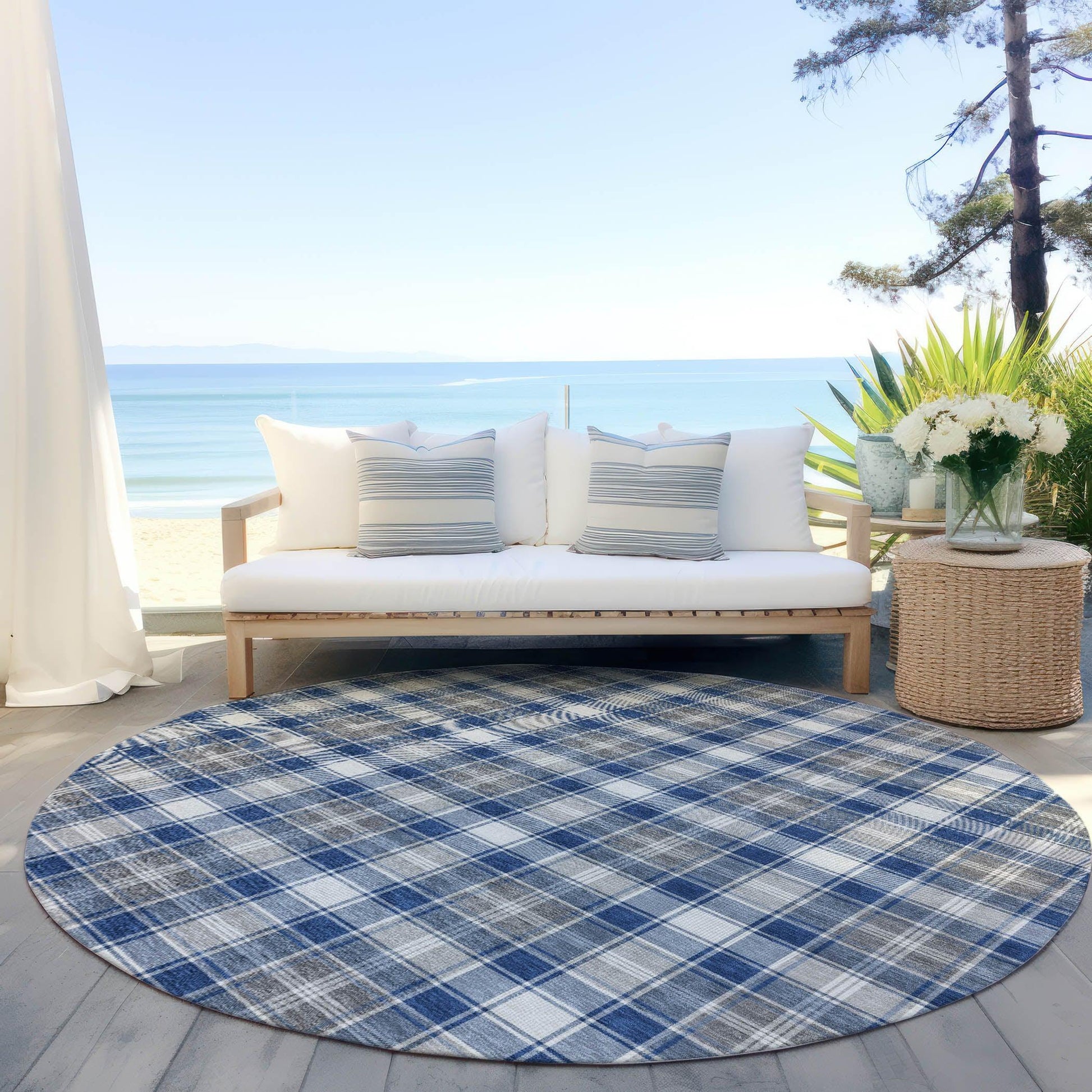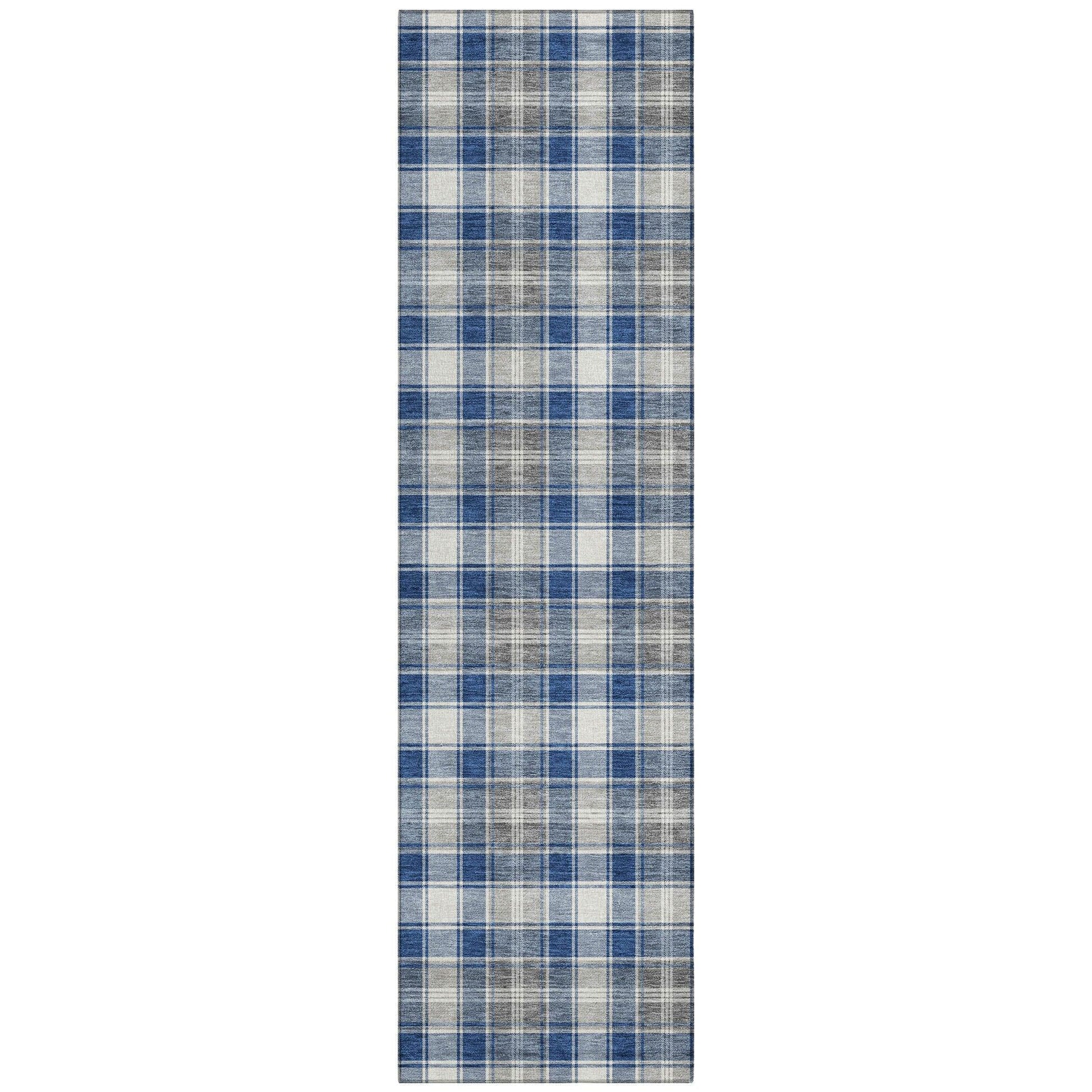 The Quaanor Blue Washable Rug adds a touch of Christmas charm to any space with its bold plaid stripes. Its design combines festive hues and clean lines, making it a perfect fit for both modern and traditional interiors. This rug is crafted from polyester, ensuring durability and ease of maintenance. It's perfect for creating a cozy atmosphere in your home, whether placed indoors or outdoors. With its ultra-thin profile, the rug is not only stylish but also practical, as it dries quickly after rain or cleaning.