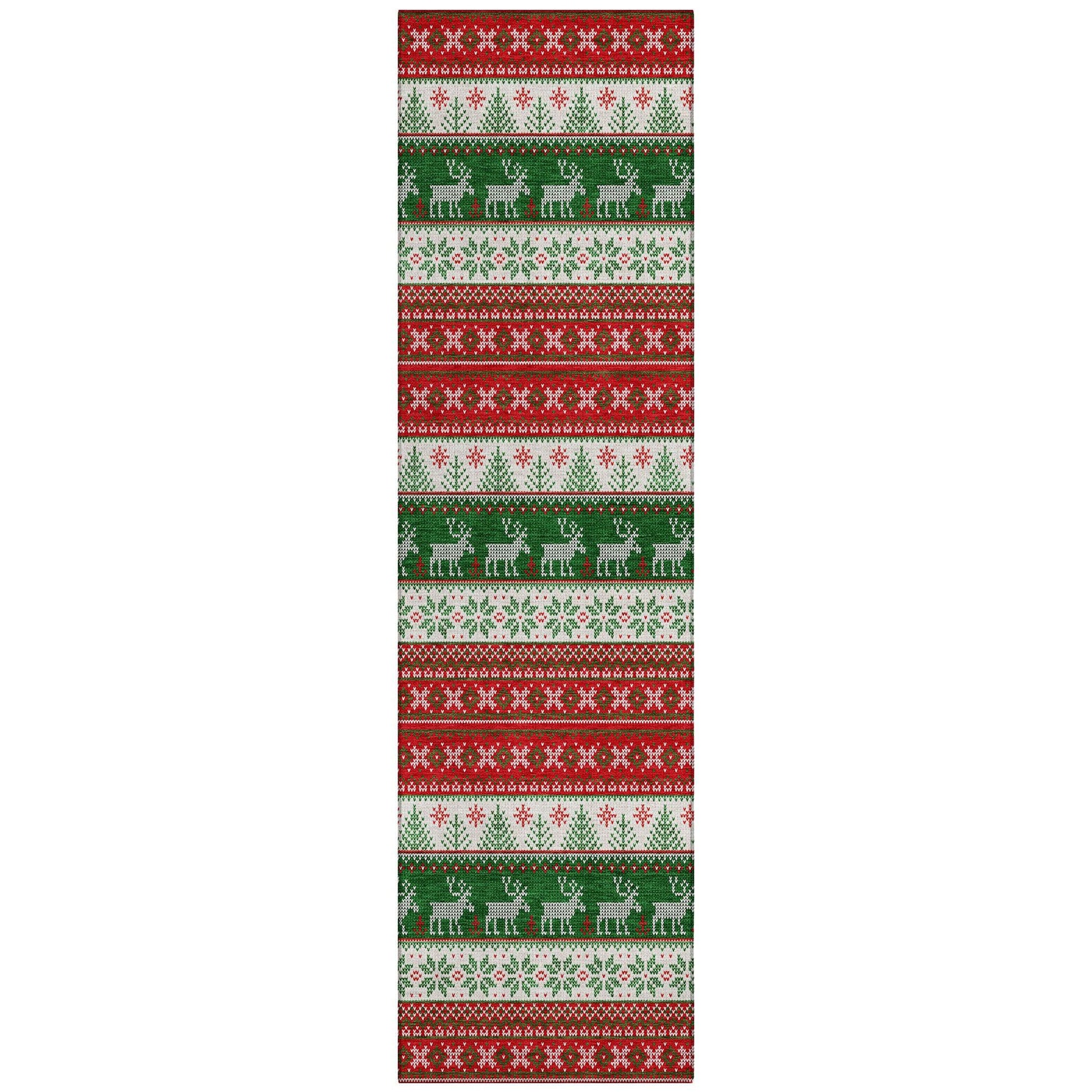 Quaara Red Washable Indoor-Outdoor Christmas Rug Features: