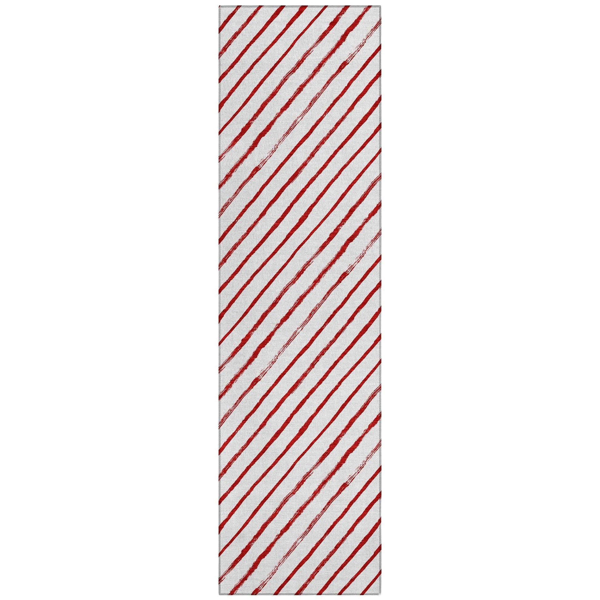 Festive diagonal stripes bring a lively touch to your holiday décor with this vibrant red rug. The dynamic angled design infuses your space with a sense of movement, perfect for creating a cheerful atmosphere. Its transitional style seamlessly blends a Christmas pattern into both classic and modern settings, making it a versatile choice for any home. Crafted from polyester, this rug is designed for both indoor and outdoor spaces, with UV stabilization to maintain its vivid color. Whether placed on your patio or in your living room, it adds a touch of festive charm.