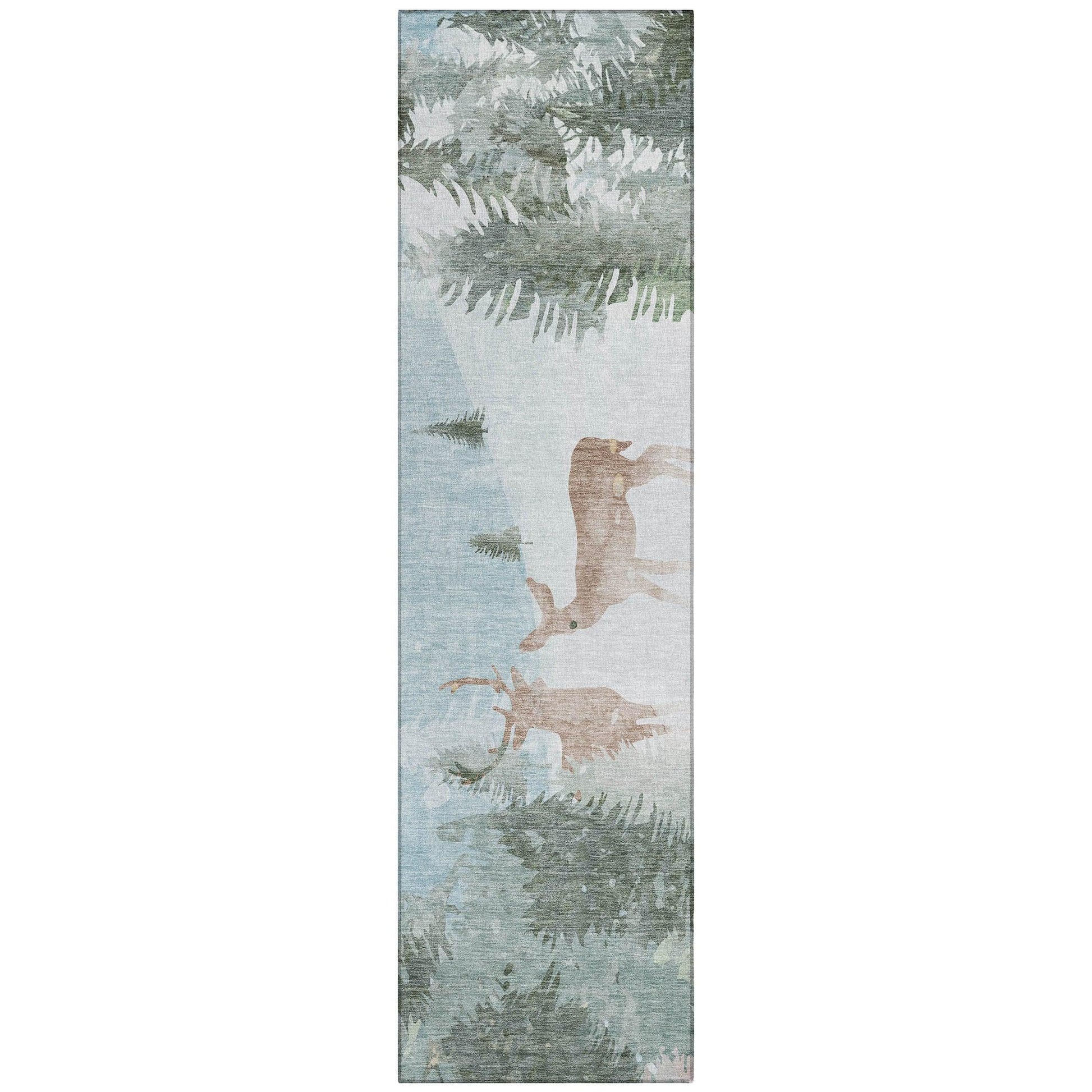 Bring the tranquility of a winter forest into your home with this beautiful rug. The serene scene of two deer atop a snowy hill, surrounded by trees and clouds, adds a touch of elegance to any space. This rug's intricate pattern not only warms up your holiday décor but also fits seamlessly with both modern and classic styles. Crafted from durable polyester, it is designed for both indoor and outdoor use. Its blue color adds a calming tone, while the ultra-thin construction makes it easy to clean and care for.