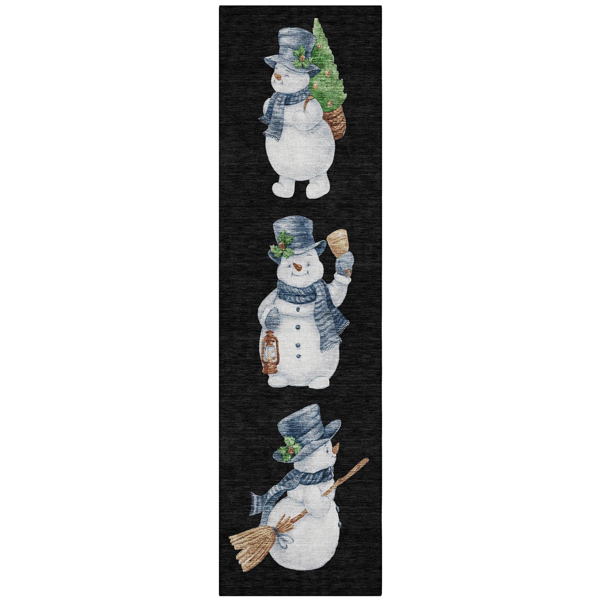 Transform your living spaces with the Raeanor Black Washable Indoor-Outdoor Rug. This rug is not just a decorative piece but a practical addition to any home. Featuring the joyful faces of three snowmen, it brings a touch of whimsy and festive cheer, perfect for any holiday season. The design blends effortlessly into both modern and traditional settings, adding style to any room. Constructed with UV-stabilized materials, this rug is perfect for both indoor and outdoor use. Its ultra-thin design is easy to clean, making maintenance a breeze for busy households.