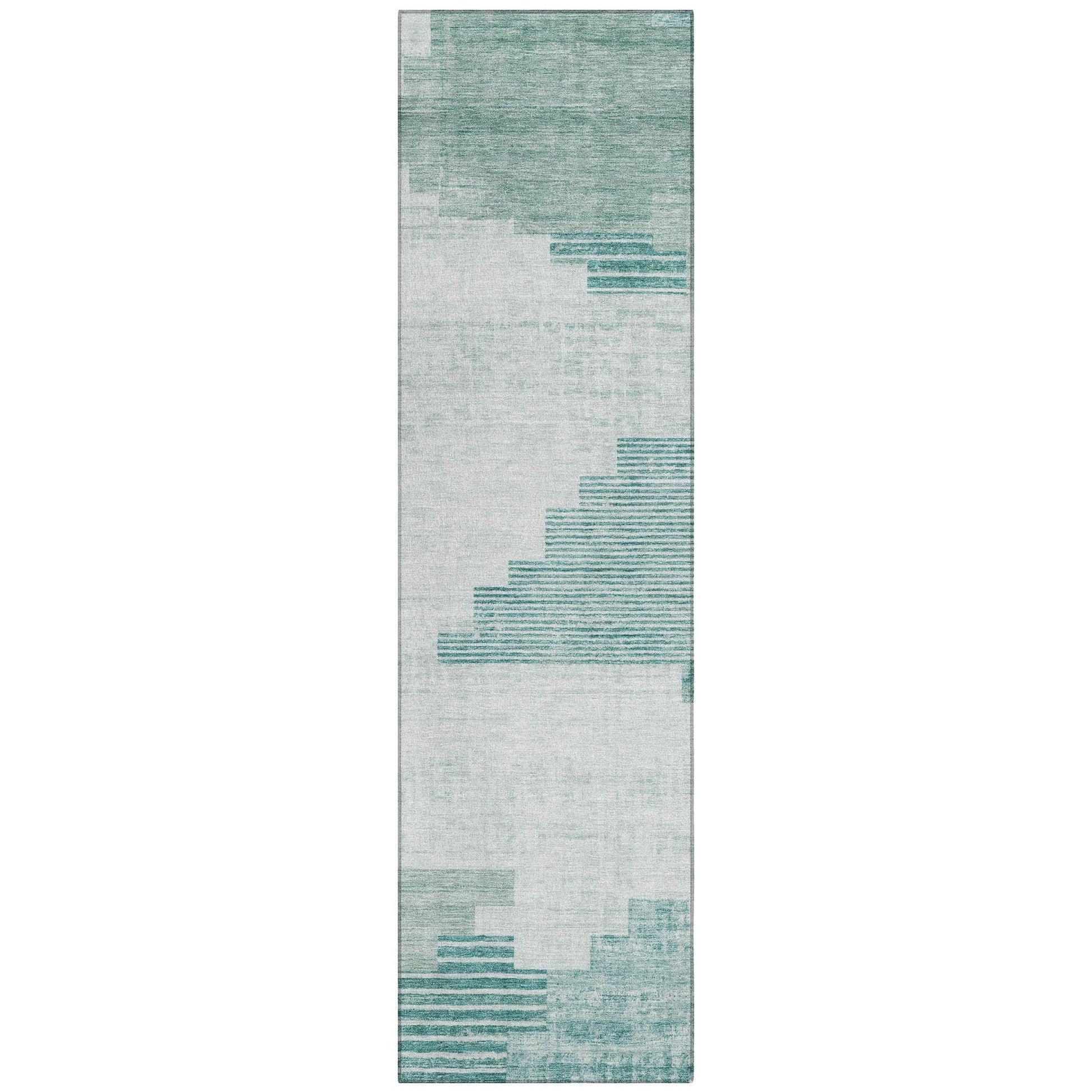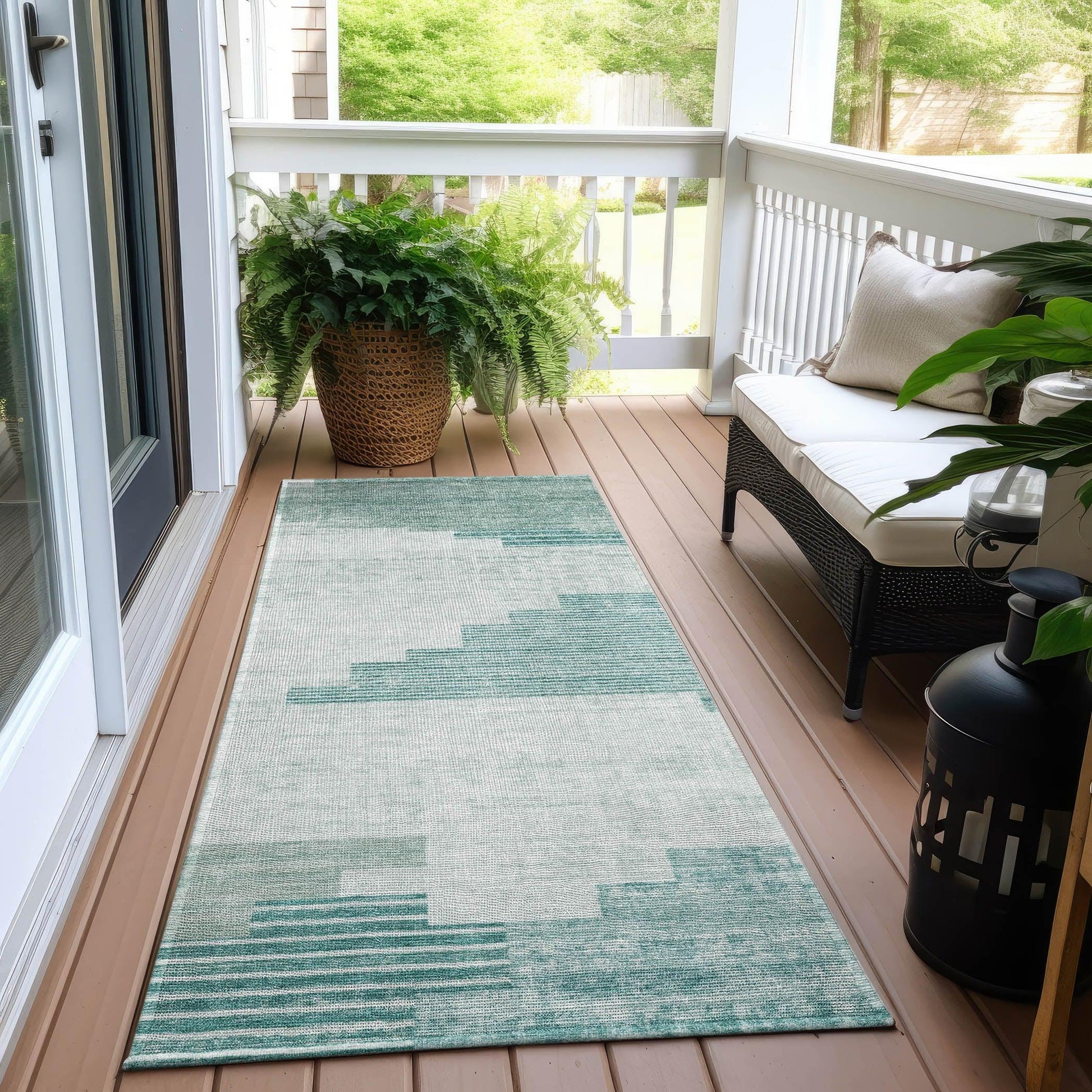 Introducing a rug that combines style and practicality for any space. The Raeel Teal Washable Rug is designed with a striking geometric pattern and a soft stria effect, making it a standout piece for both indoor and outdoor areas. Its transitional style offers a versatile look that fits seamlessly into various decor themes. Crafted to last, this rug is UV stabilized, ensuring it retains its vivid teal color even when exposed to sunlight, though it thrives best in shaded or partially covered areas.