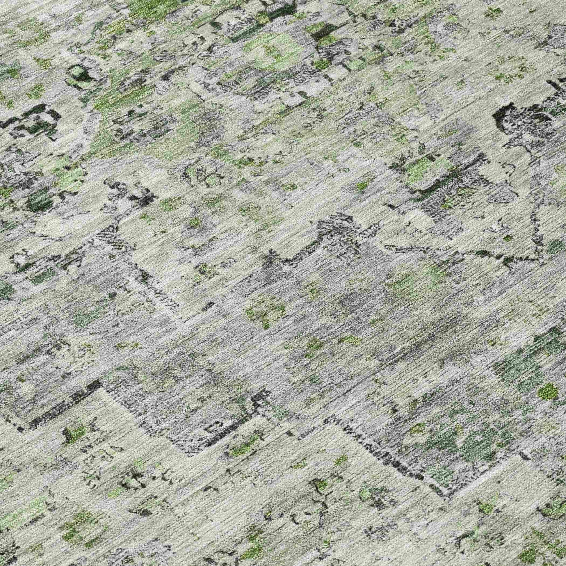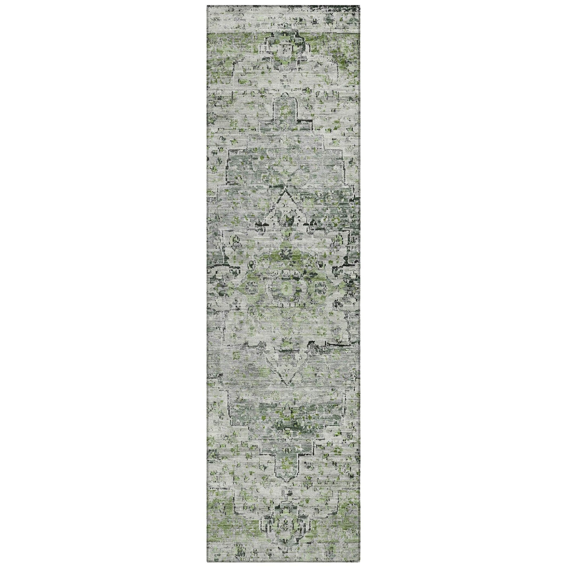 Enhance your living spaces with a touch of elegance through the Raeor Aloe Washable Rug. This traditional rug brings a classic charm with its center medallion and a globally-inspired distressed pattern. Its Aloe color offers a serene backdrop, suitable for various decor styles. Designed for both indoor and outdoor use, this rug is UV stabilized to withstand the elements, making it a reliable choice for patios or living rooms alike. The rug's ultra-thin polyester construction ensures that it dries quickly, ideal for areas prone to moisture.