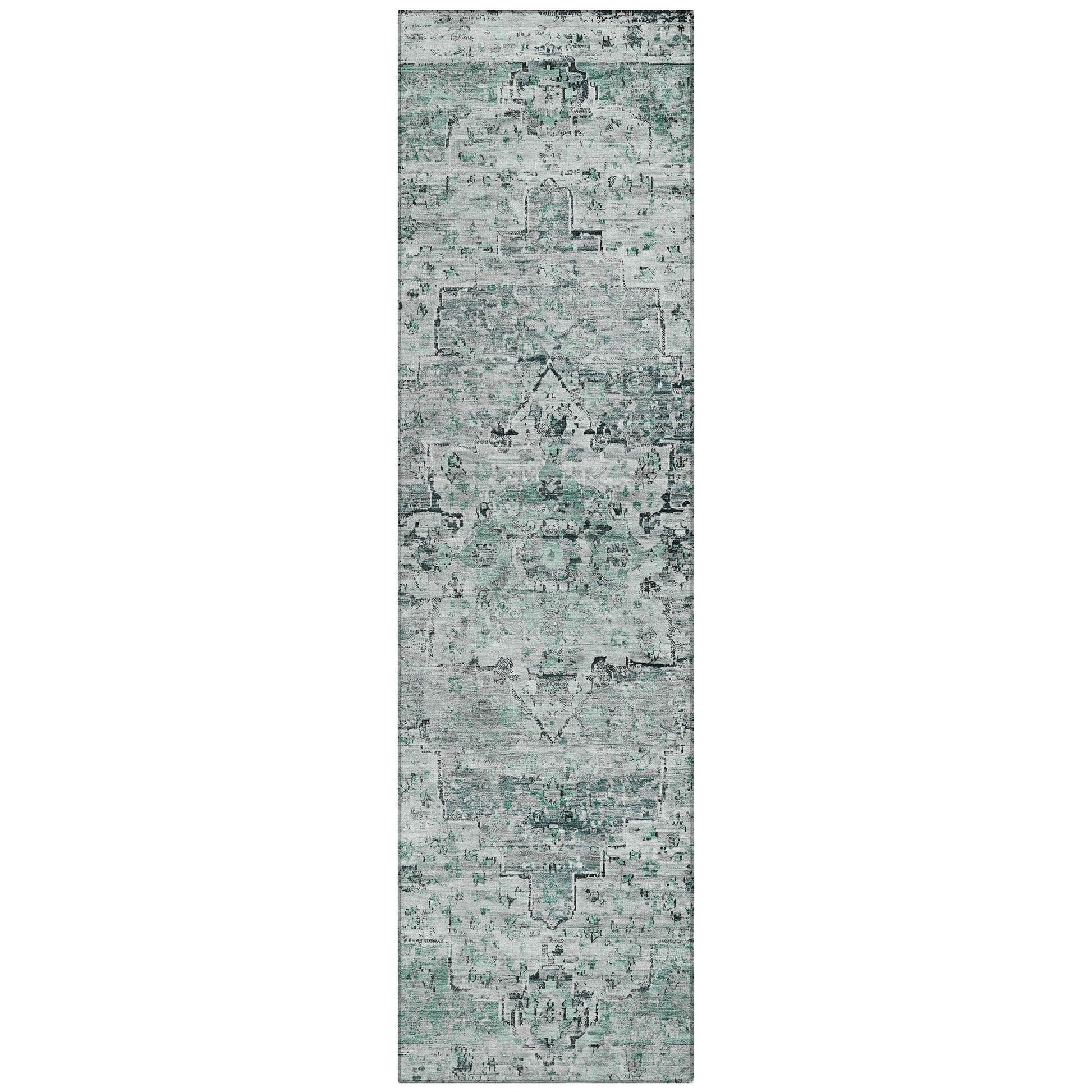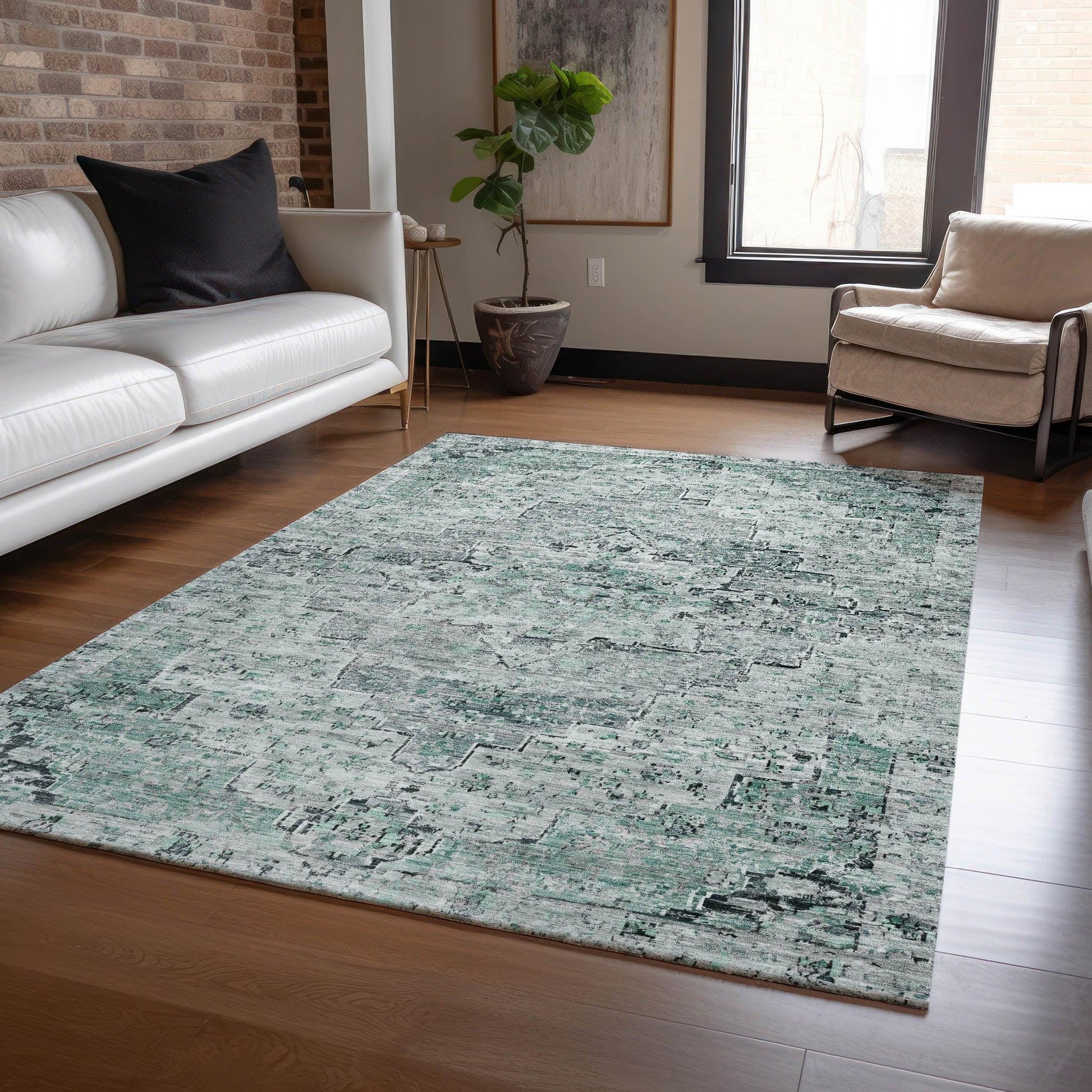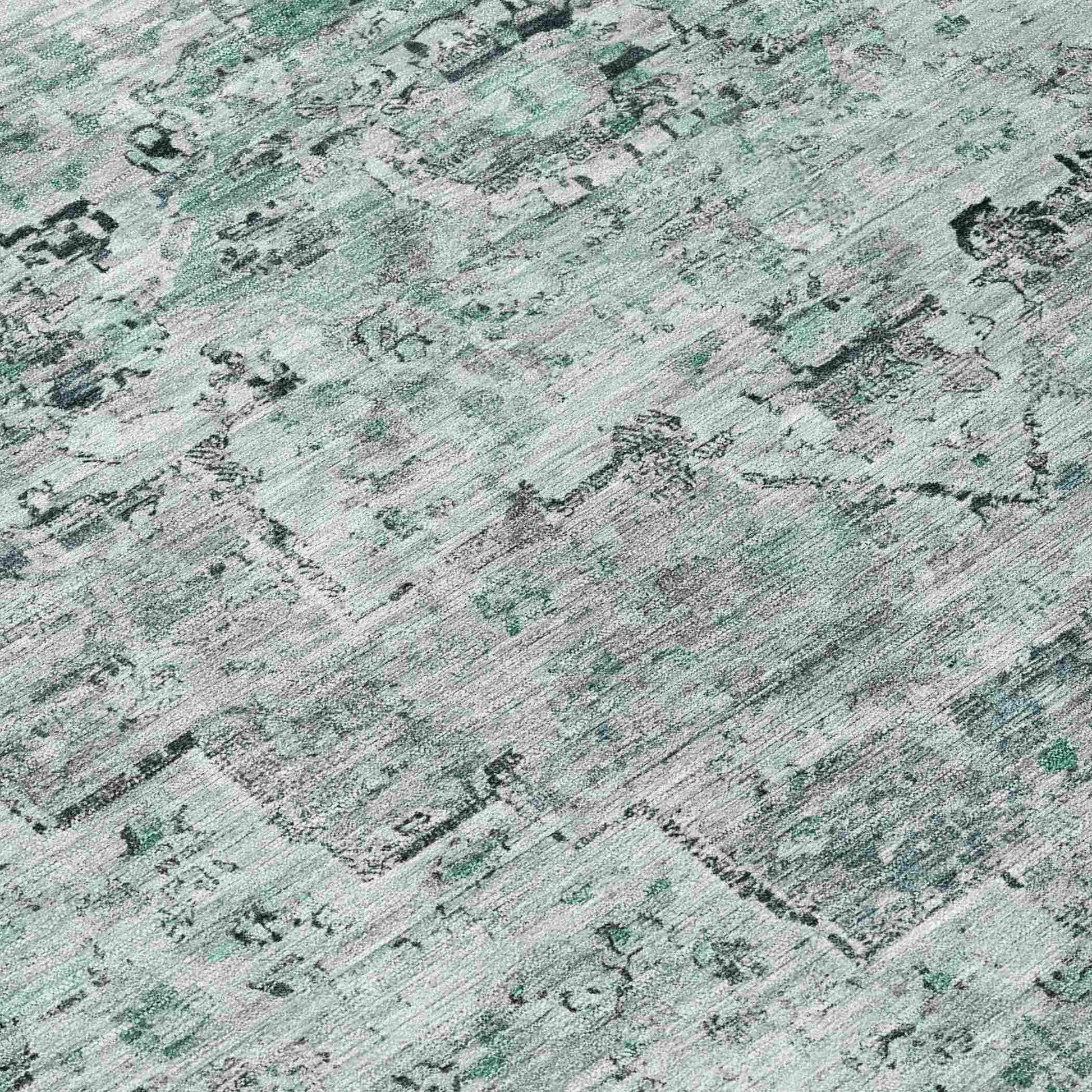 Enhance your living space with this beautifully crafted teal rug that brings both style and practicality to your home. The traditional design, featuring a central medallion and a globally-inspired distressed pattern, adds a touch of elegance to any room. Perfect for both indoor and outdoor settings, the rug is UV stabilized to ensure it withstands the elements, maintaining its vibrant color in various conditions. Its thin construction and non-skid backing mean you won't need an additional rug pad, making it a cost-effective choice for your home decor needs.