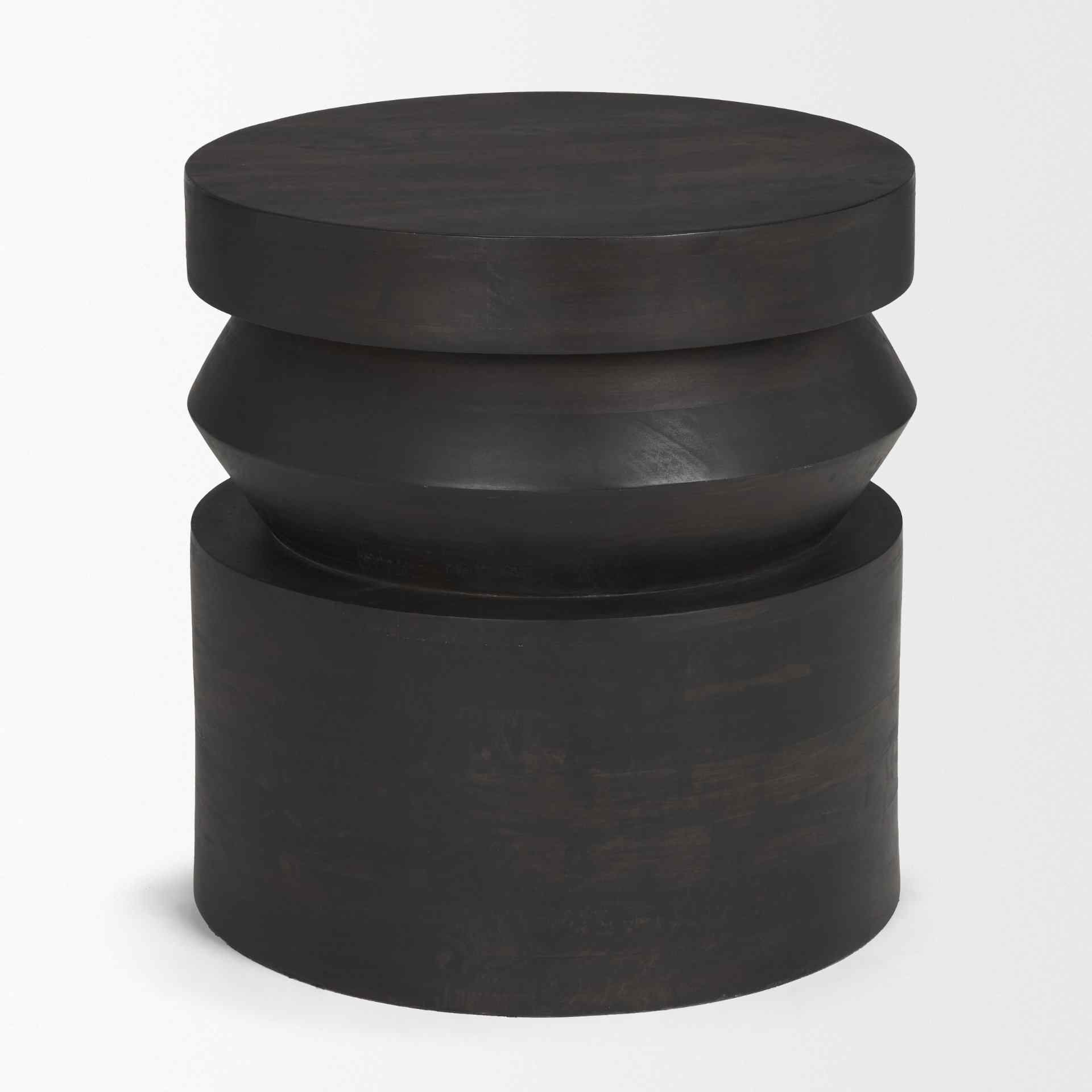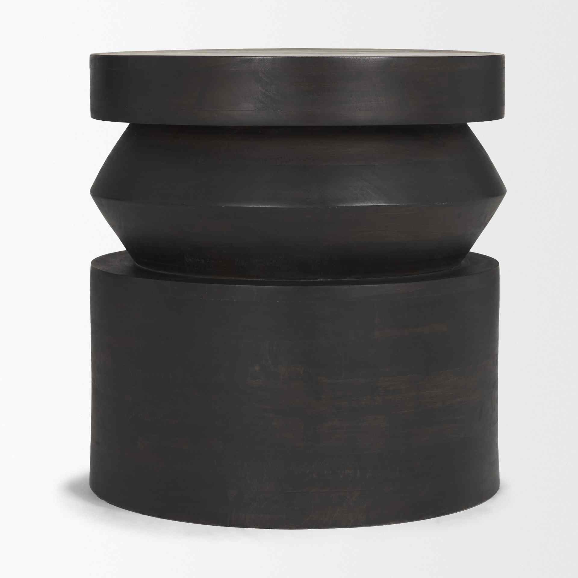 Rashama Dark Brown Stacked Geometric Accent Table Features: