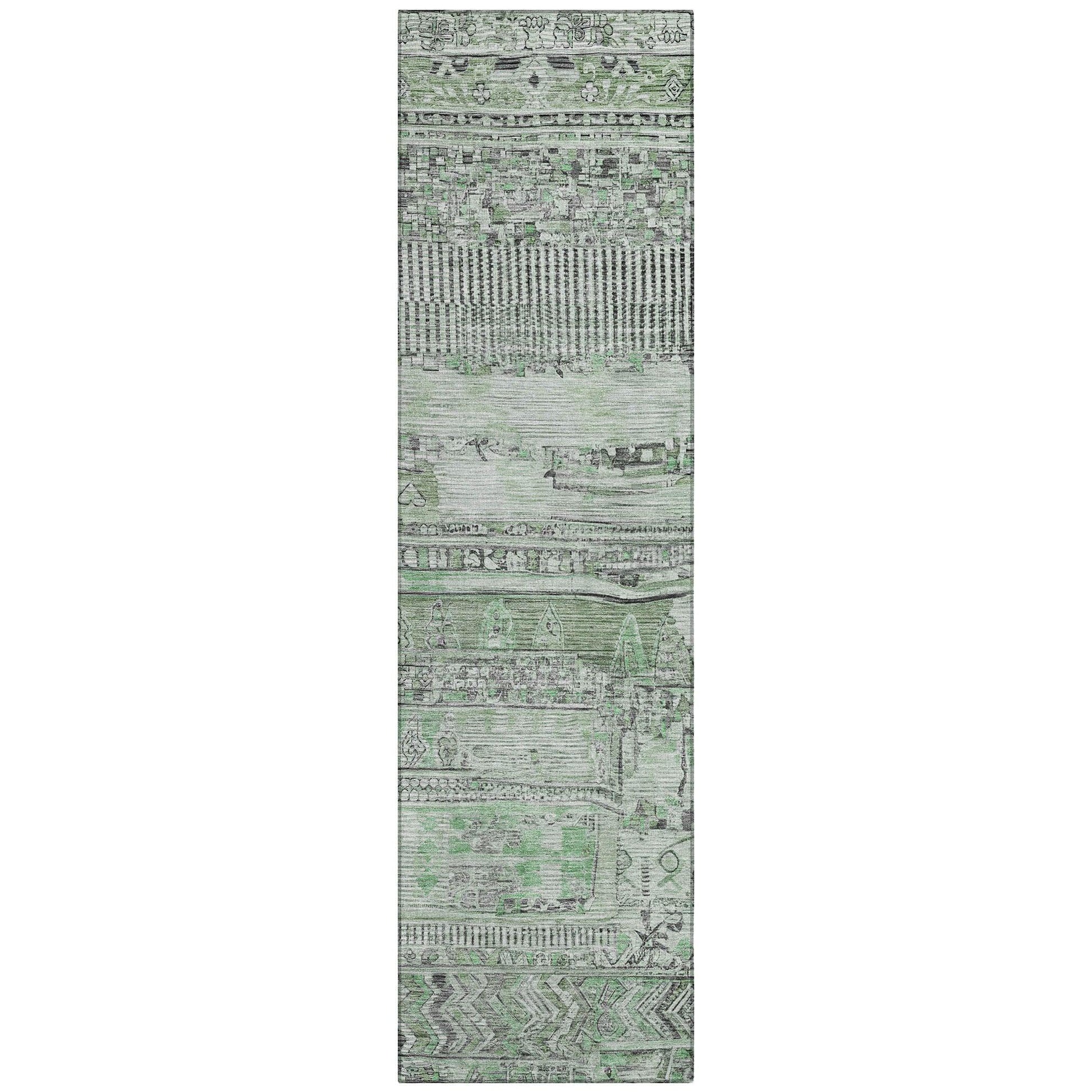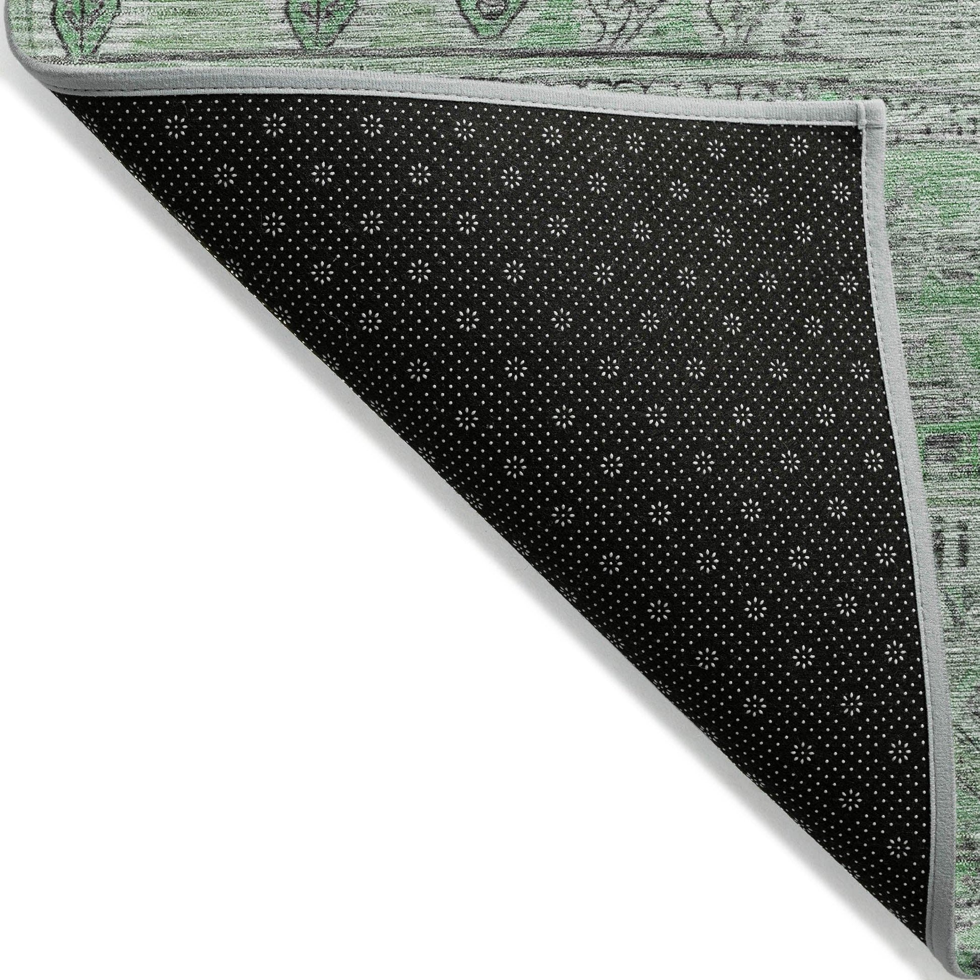 This green rug brings a touch of style to any space with its eclectic motifs and stripe patterns. Perfect for both indoor and outdoor use, it features UV-stabilized fabric that stands up to various weather conditions. Its ultra-thin weave and non-skid backing mean you can skip the additional padding, making it a practical choice for homes with kids and pets. The rug's machine washable design ensures easy maintenance, letting you keep it fresh and clean with minimal effort.