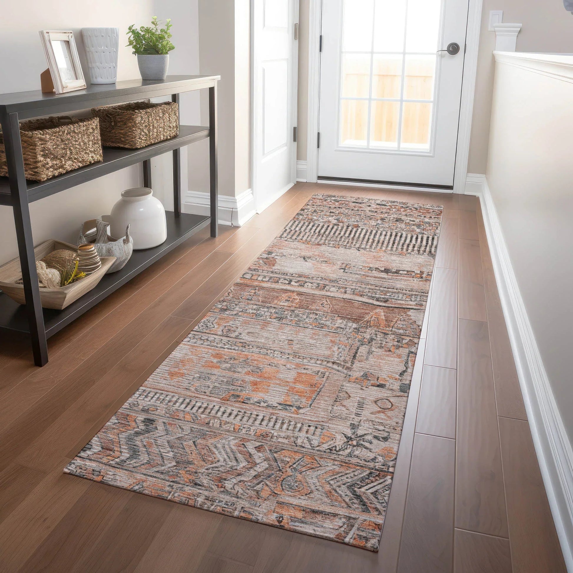Saelanor Orange Washable Indoor-Outdoor Rug