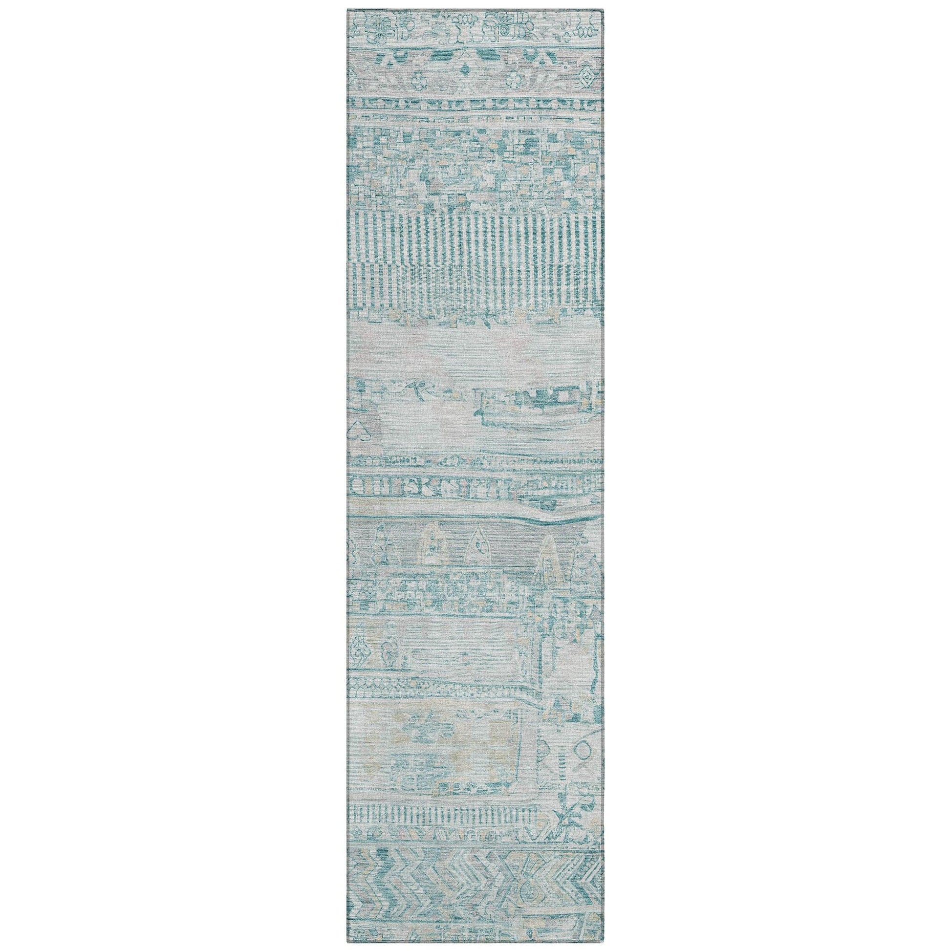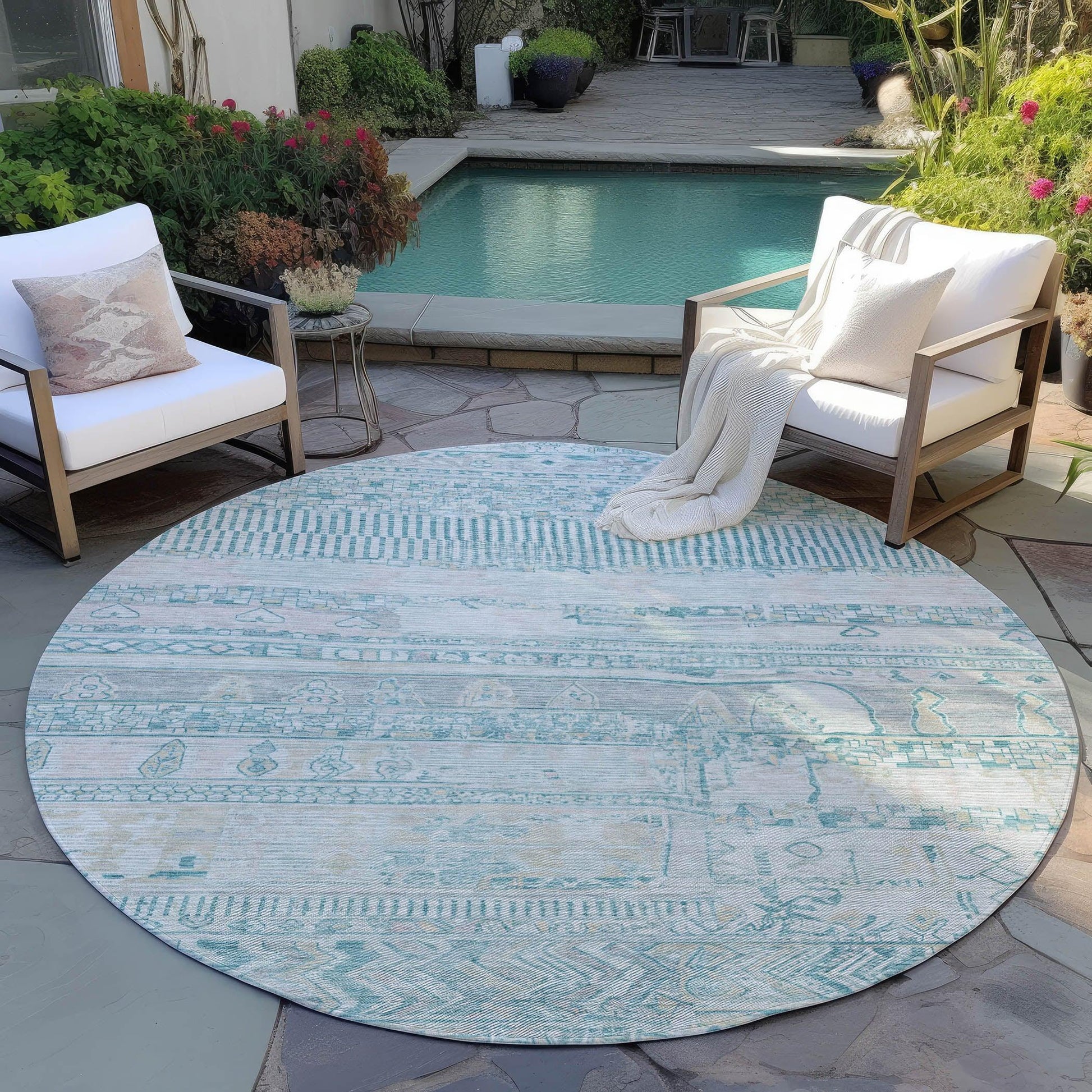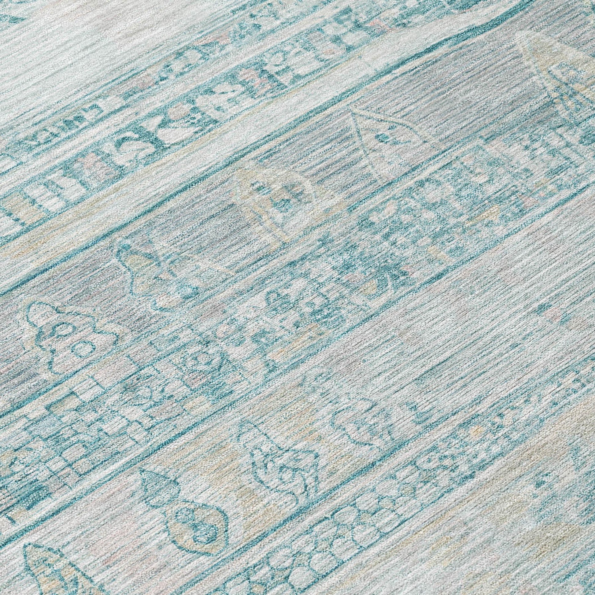 Step into style with a rug that beautifully combines eclectic motifs and stripe patterns, designed for versatile transitional spaces. The Saelanor Teal Washable Rug is perfect for both indoor and outdoor settings, thanks to its UV-stabilized fabric that withstands the elements. This ensures that the vibrant teal color remains bright and inviting, even when exposed to sunlight. Its ultra-thin weave and non-skid backing mean additional padding is unnecessary, providing a sleek look and secure footing.