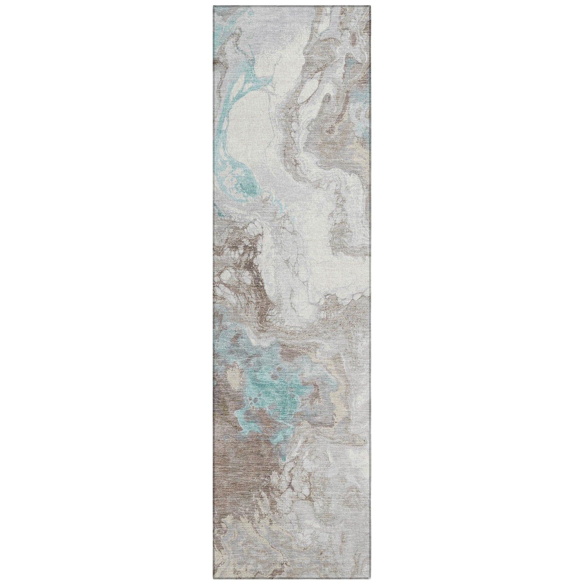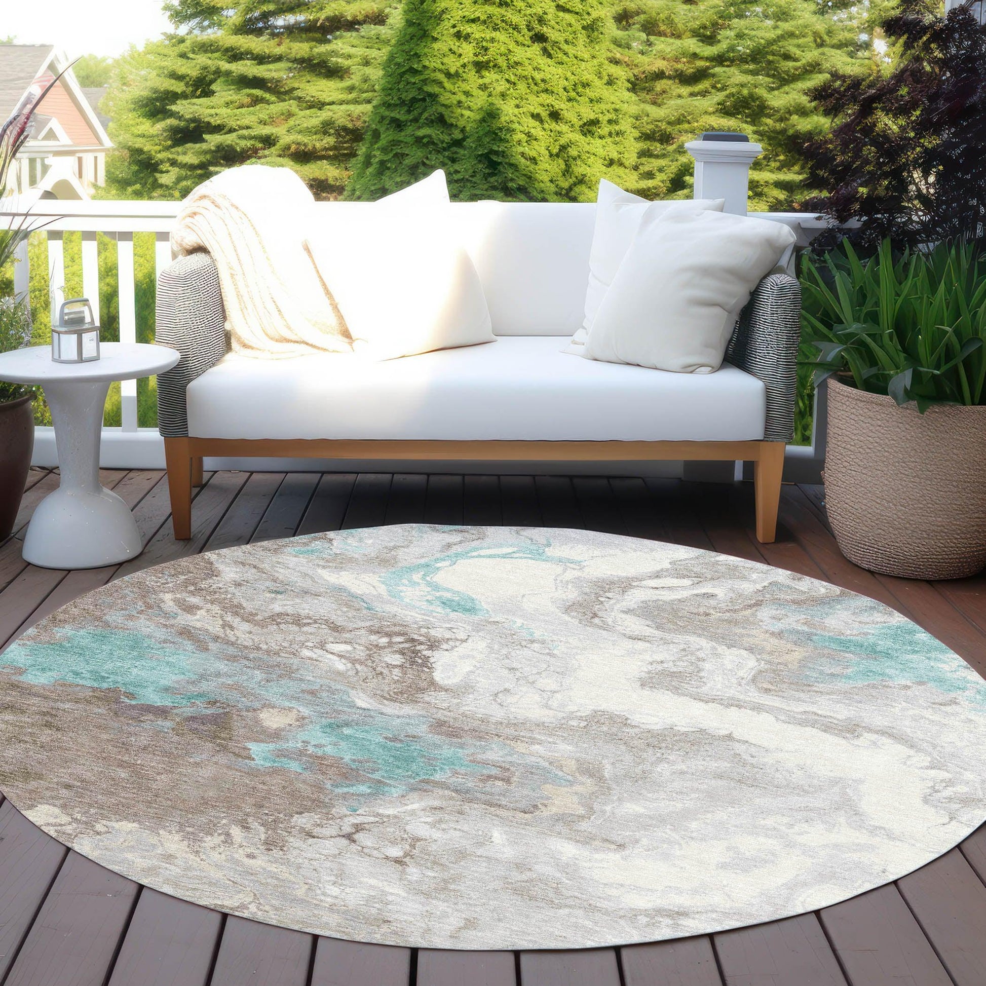 The Saelira Teal Washable Rug is crafted to enhance any space with its modern design and practical features. Its abstract pattern of freeform waves adds a touch of artistry that suits both indoor and outdoor settings. Thanks to its UV stabilization, this rug remains vibrant even when exposed to sunlight, though it performs best in shaded or partially covered areas. The rug's teal color complements a wide range of decor styles, making it a versatile addition to your home.