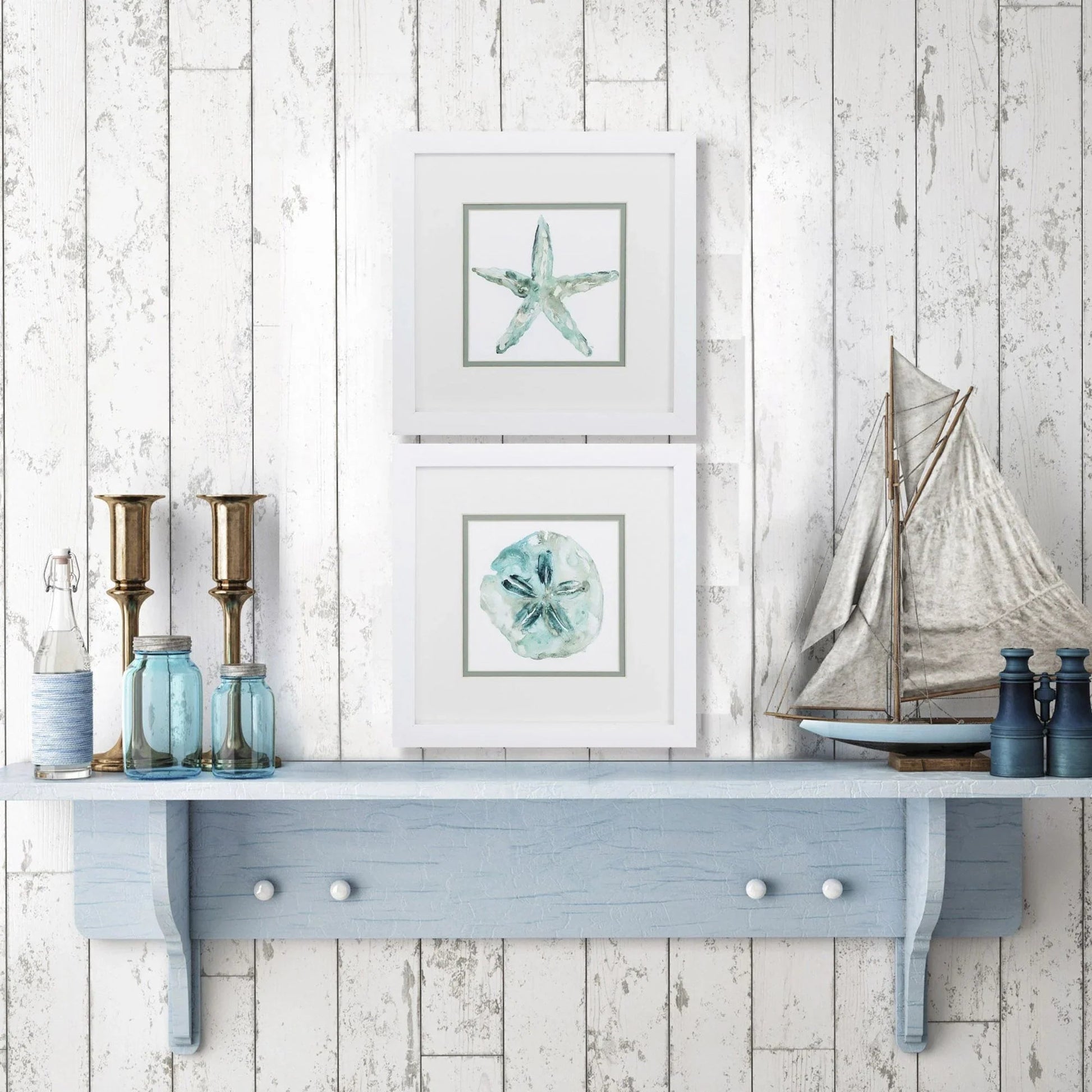 - Theme: Coastal, decorative prints