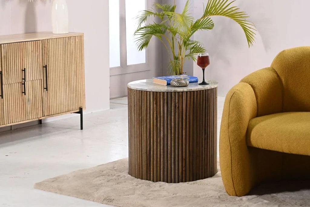 Sarnelle Marble Top Lamp Table With Storage Features: