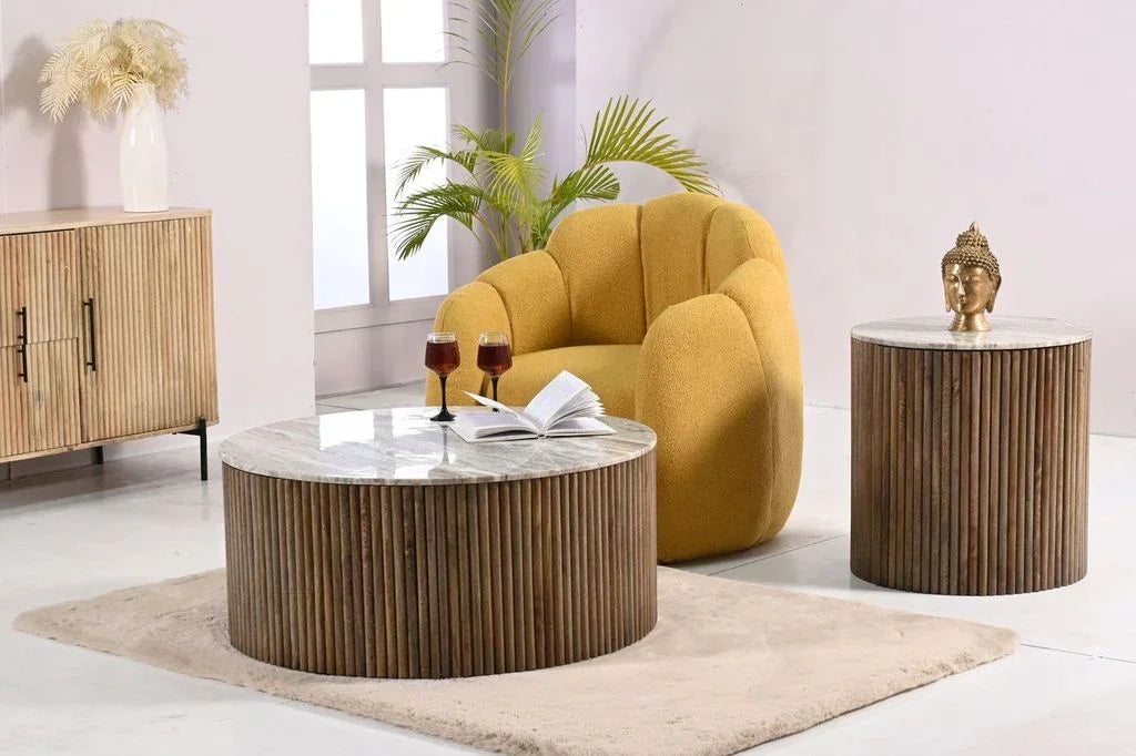 The Sarnelle Marble Top Lamp Table With Storage offers a blend of elegance and practicality. Its round shape and rich brown and white color palette make it a versatile addition to any room. The combination of wood and marble creates a sturdy piece that exudes sophistication. The marble top is not only beautiful but also durable, providing a perfect spot for a lamp or decorative items. This table is designed to fit seamlessly into a living room, bedroom, or office, adding a hint of luxury without overpowering your existing décor. This table stands out with its convenient storage feature, allowing you to keep your space tidy and organized.