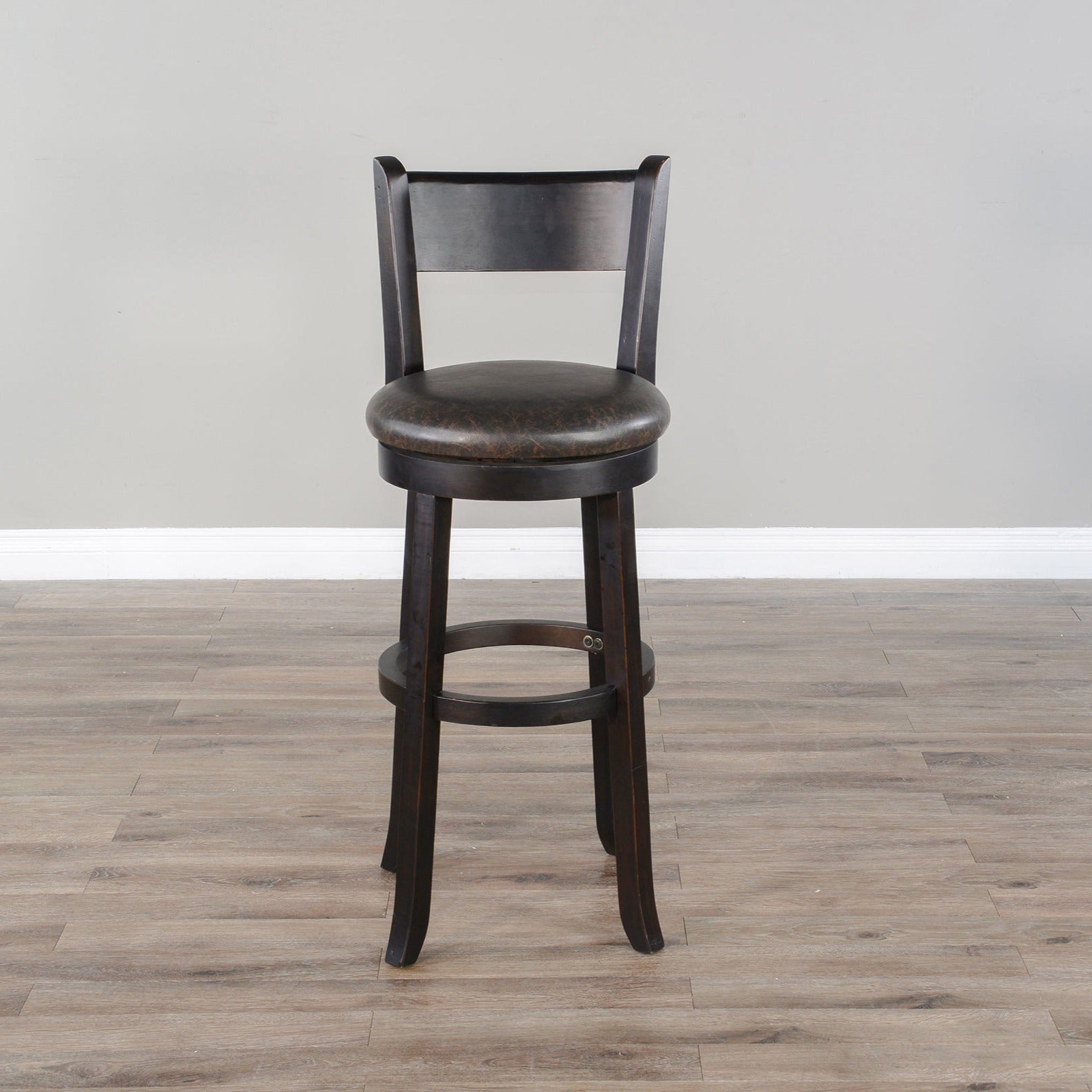 Introducing the perfect addition to your home bar or kitchen area, the Scottsdale Bar Swivel Stool Set offers both style and comfort. Crafted from high-quality mahogany, these stools boast a traditional look with a sleek black, reddish brown, brown and dark brown walnut finish. The cushioned seat ensures comfort during long conversations, while the swivel function adds convenience and ease of movement. Designed with a footrest, these stools provide extra support, allowing for relaxed seating. Their sturdy construction ensures durability, making them a lasting choice for any home. Add a touch of elegance and functionality to your space with this stylish set of two.