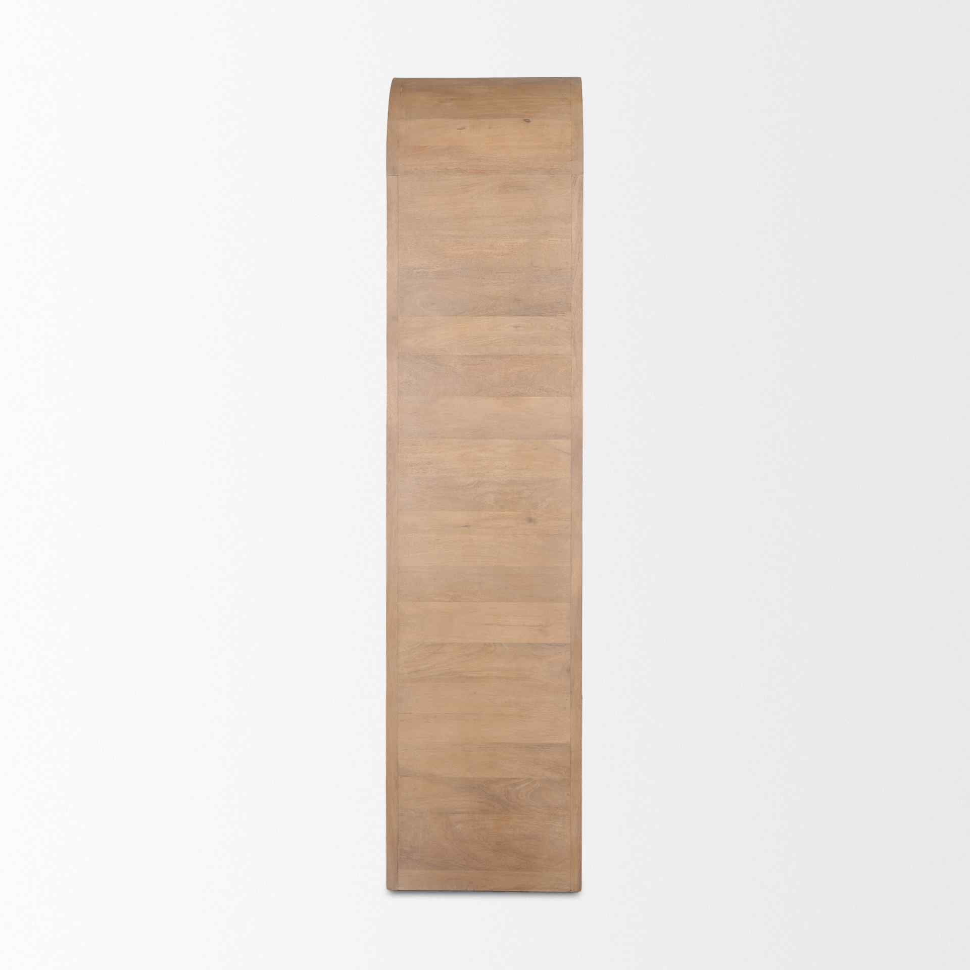 The Sorina Light Brown Wood Bookcase is a beautifully crafted piece that blends style with function. Made from solid mango wood, it features a light brown finish that highlights the natural beauty of the wood. Each of the four CNC-designed doors showcases a unique reverse fluted pattern, adding depth and texture to its appearance. With its recessed handles, the bookcase maintains a seamless look that fits effortlessly into modern living spaces. This piece is versatile, offering ample storage with two fixed and two removable shelves, making it a practical choice for organizing and displaying books, decor, and more.