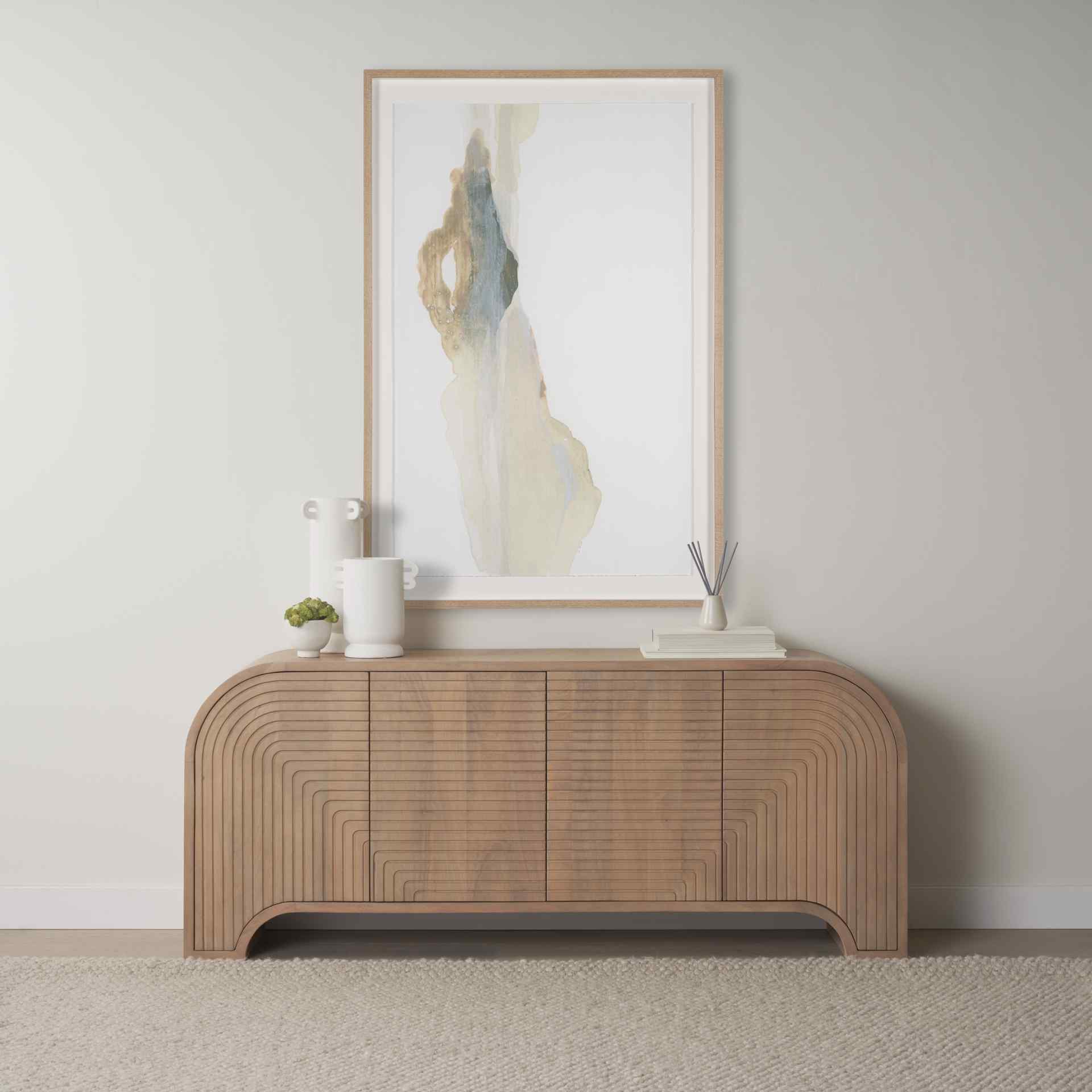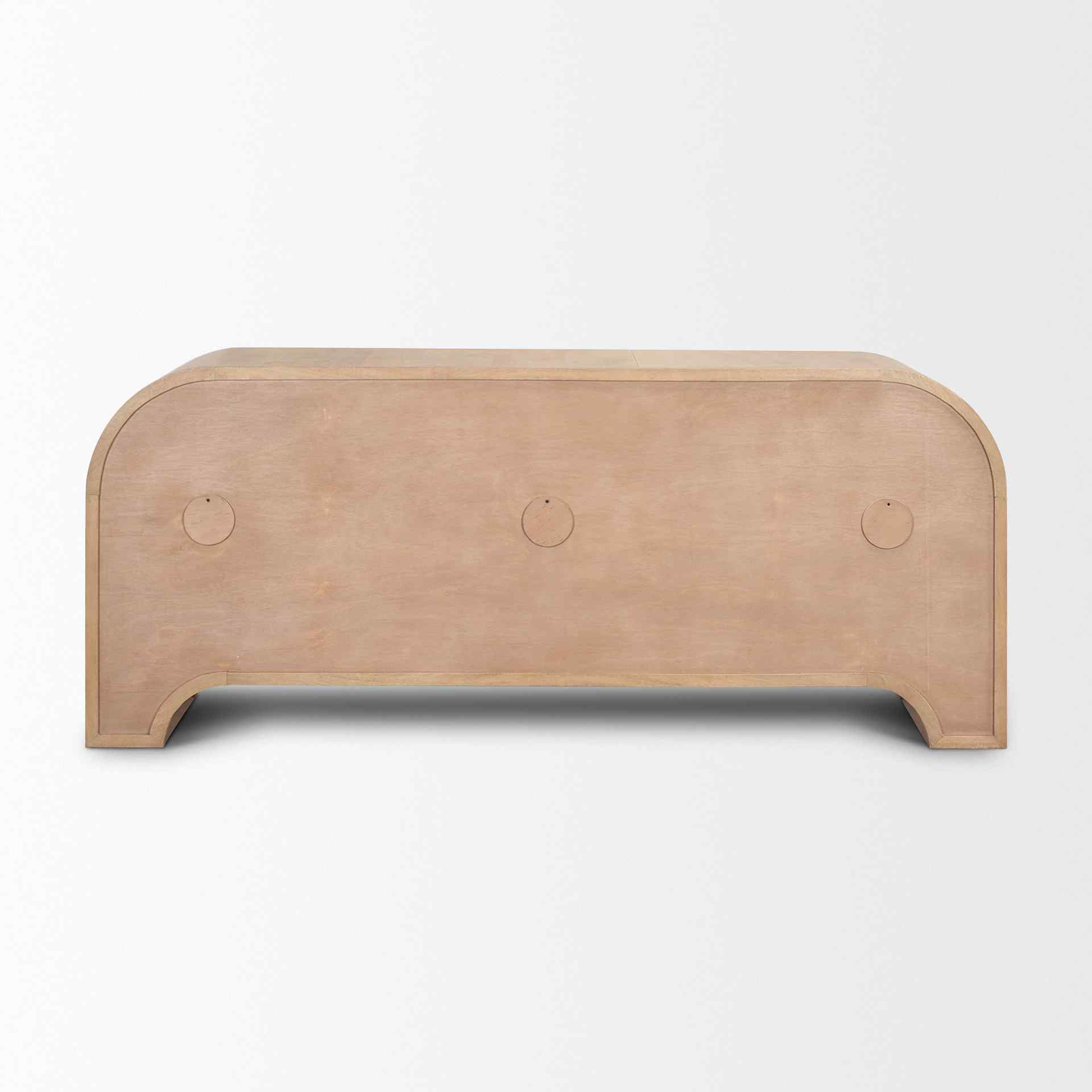 Introducing a stunning blend of style and utility, this sideboard combines modern aesthetics with practical storage solutions. Crafted from solid mango wood, it boasts a light brown finish that highlights the natural grain and unique variations of the wood. The reverse fluted design on the doors adds an elegant texture, enhancing the sideboard's visual appeal. The recessed handles are seamlessly integrated, ensuring a sleek, uninterrupted look that complements its contemporary curves.