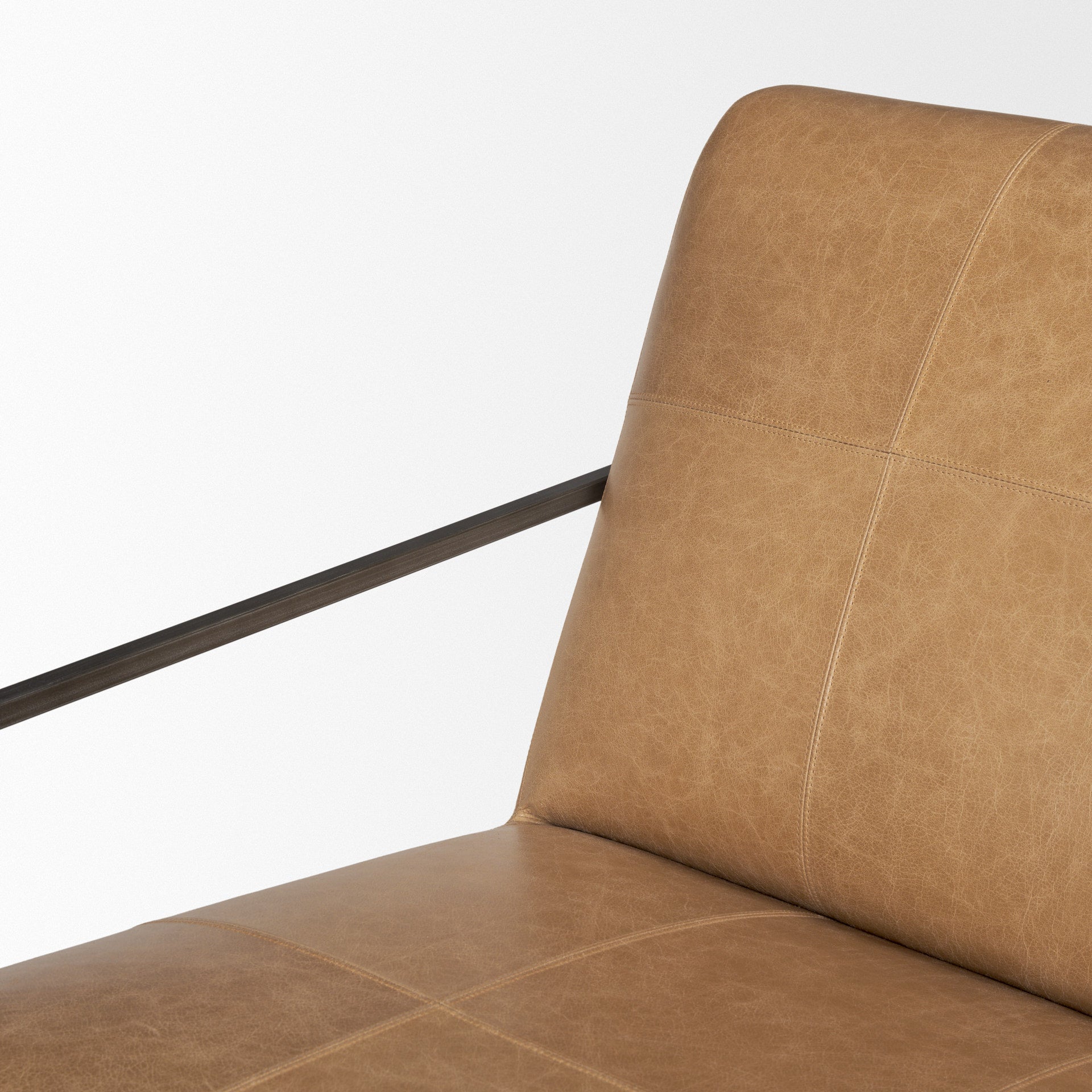 - The distinctive square patchwork pattern of Stratton, coupled with premium aged black-brown leather, crafts an accent chair brimming with character and charm.