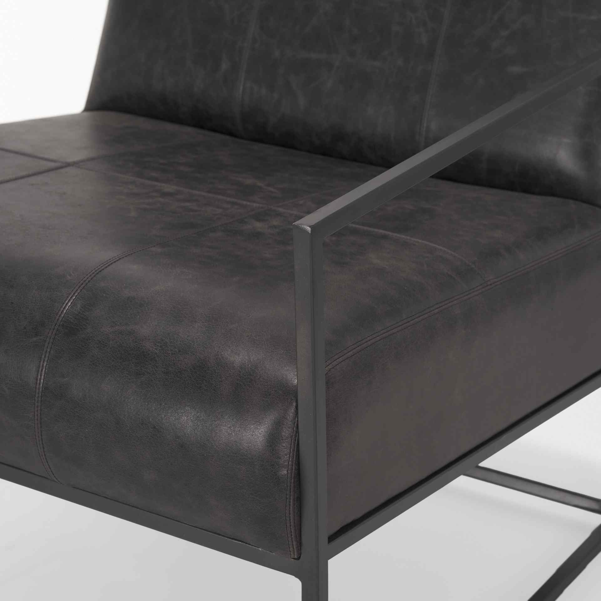 - Full grain buffalo leather with an iron metal frame.