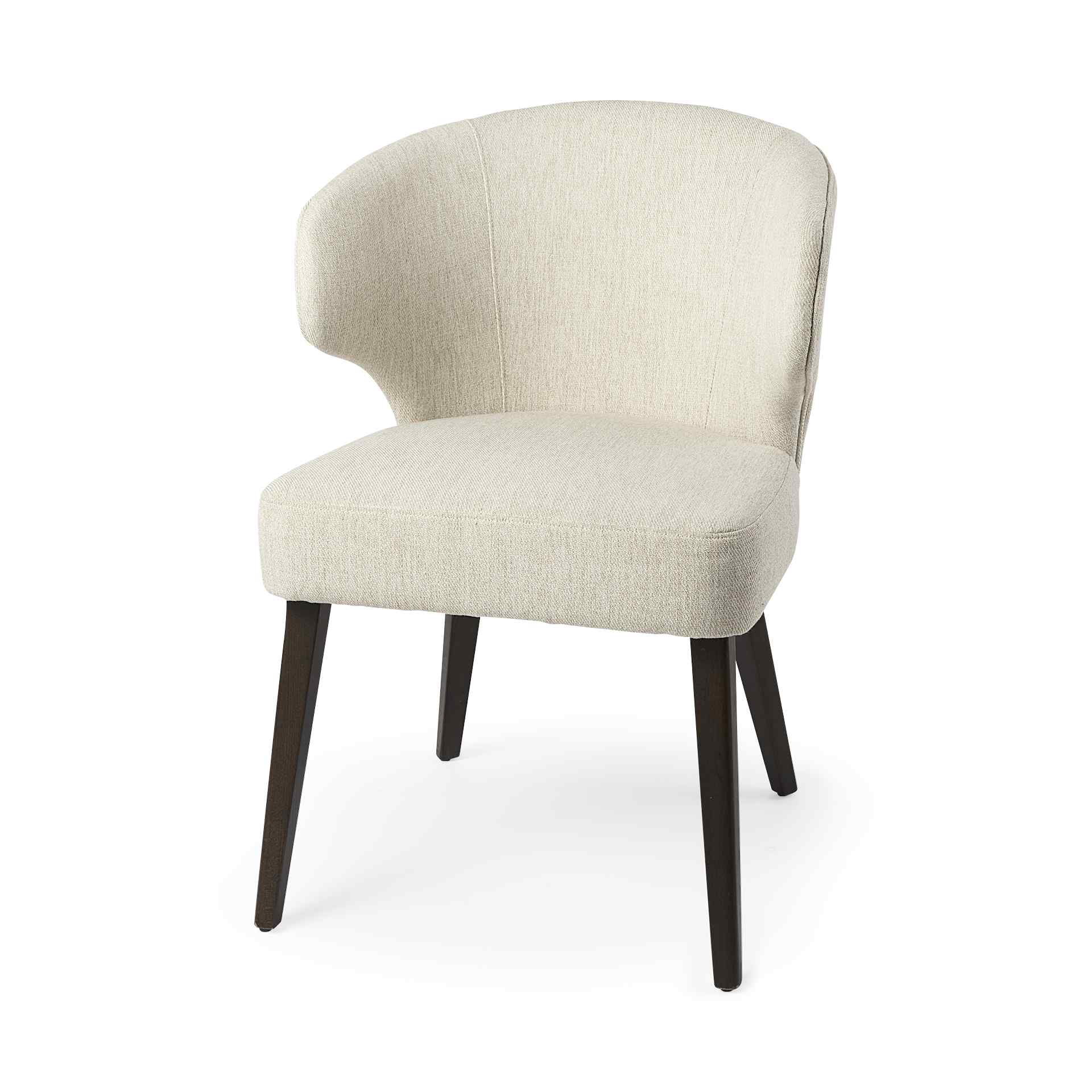 This dining set brings together sculptural style and everyday ease. The Terra Fluted Dining Table stands out with its bold design, making it a centerpiece in any dining area. Accompanied by four generously cushioned wingback chairs, it offers plush comfort for long meals and gatherings. The Sloan Arched Cabinet adds a touch of elegance and provides smart storage solutions to keep your dining space organized. This set, with its mix of wood and fabric in brown and white tones, complements various interiors, delivering a complete dining upgrade. Enjoy standout design and functionality with this stylish ensemble.