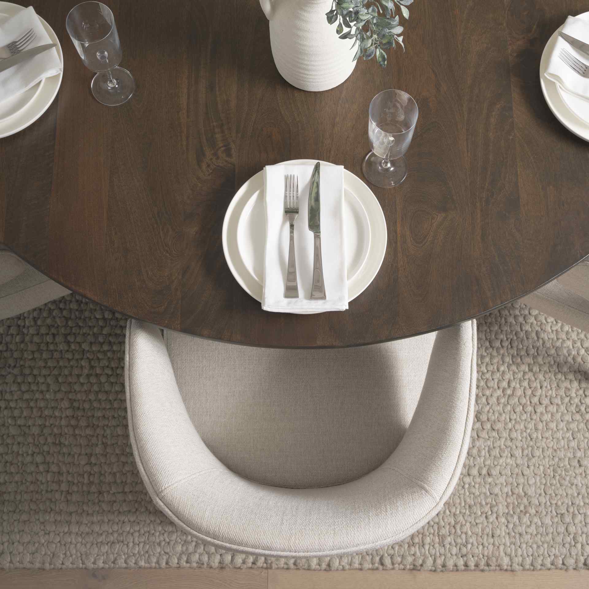 Sculptural style meets everyday ease with this dining set. The Terra Dining Set with its fluted table and sideboard brings a bold design to your dining room. The table's fluted pedestal creates a striking centerpiece, while the set of six cushioned wingback chairs offer wraparound comfort for your guests. The Terra Sideboard enhances the set with its sweeping curves and rich texture, providing both style and smart storage solutions. This combination ensures a complete dining upgrade, offering both standout design and practical functionality to elevate your dining experience.