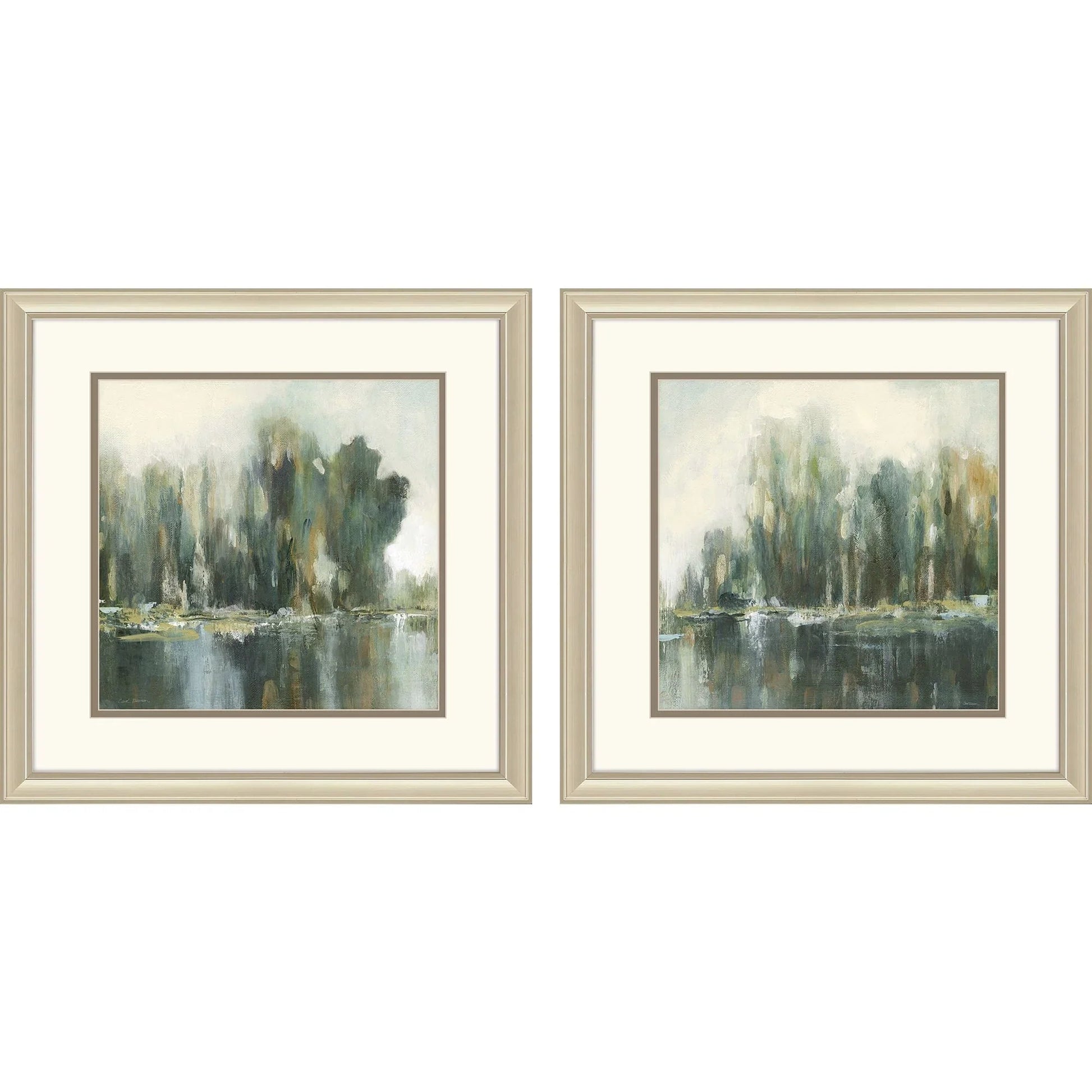 Bring the serene beauty of nature into your home with this set of two Framed Wall Art pieces. The Textured Treeline S/2 captures a quiet forest at the water's edge, matted in a crisp white that enhances the peaceful scene. Each piece is framed in a champagne gold finish, adding a touch of elegance to your decor. These art pieces offer a glimpse of tranquility, with earth tones of green, brown, and grey that create a calming atmosphere.