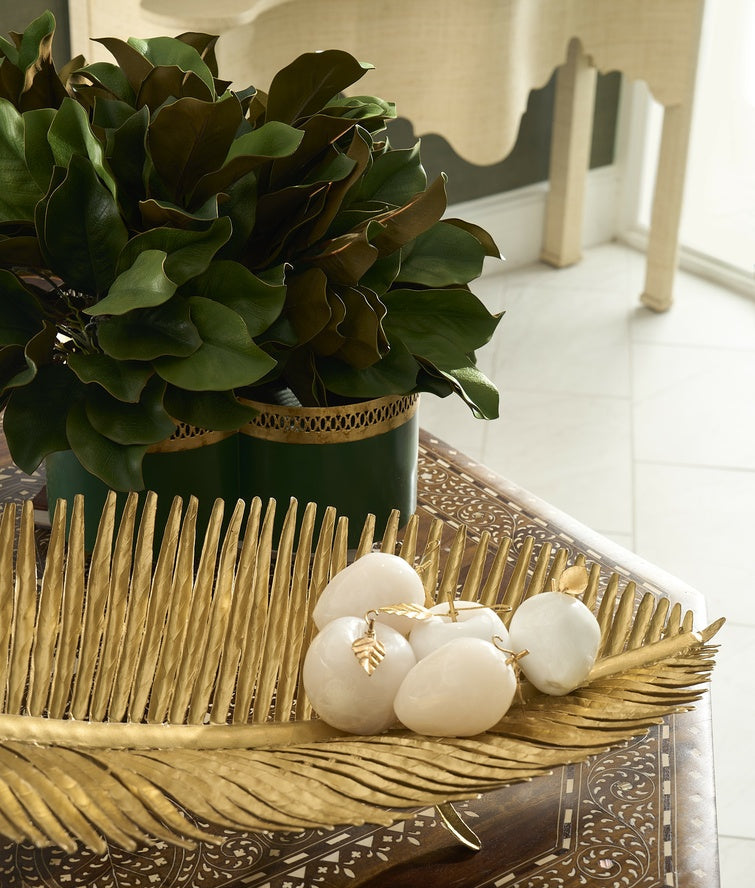 Enhance your home decor with the Tracery Cachepot, an elegant green planter that adds a touch of sophistication to any room. Its unique quatrefoil shape, complemented by antique gold filigree trim and claw feet, makes it a stunning choice for showcasing orchids or other floral arrangements. Crafted from durable iron, this planter is designed by Lisa Kahn and fits perfectly in traditional design settings. Whether used as a standalone piece or paired with porcelain flower stems, it elevates the aesthetic of your living or dining room. Available in various sizes and finishes, it offers versatility and style.