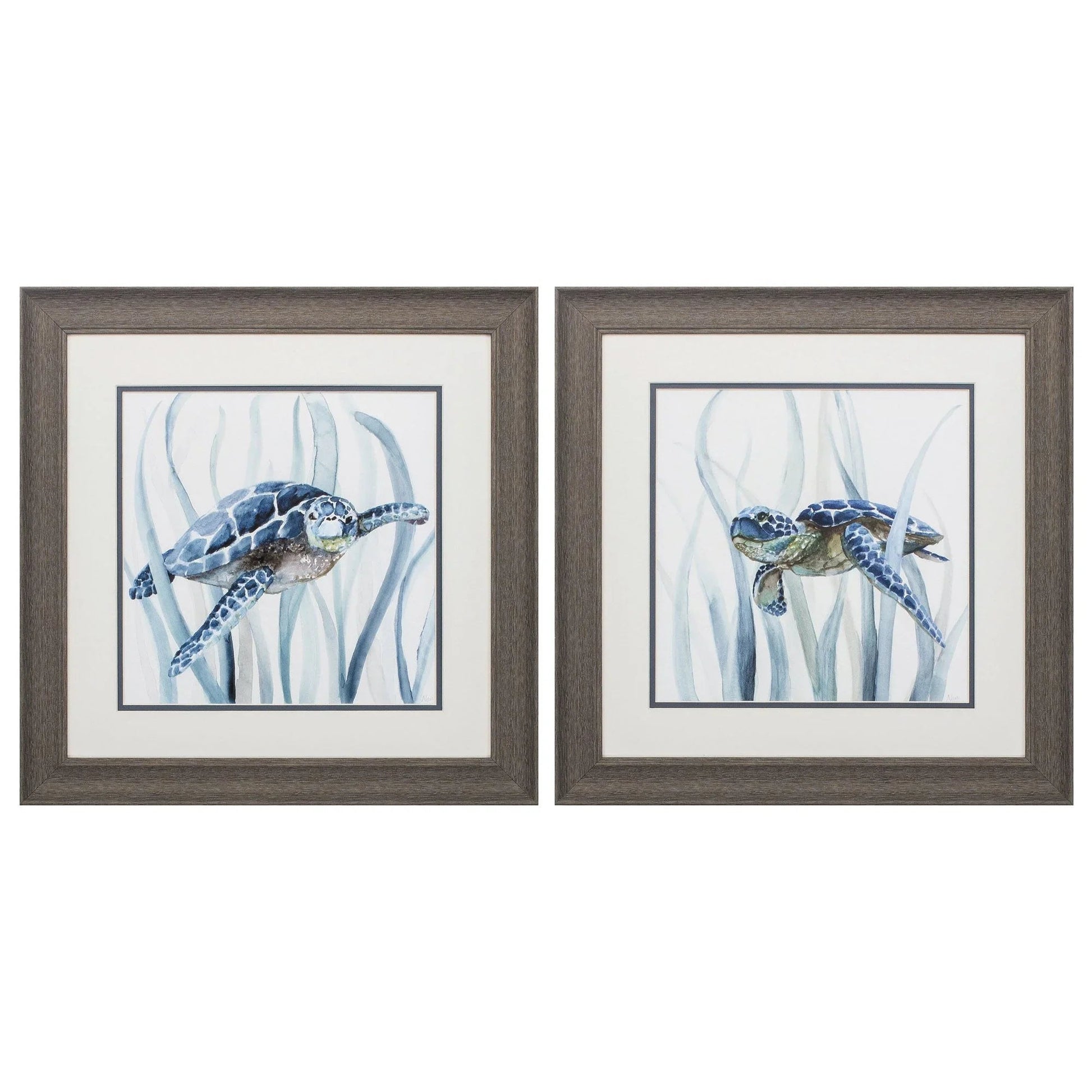 Turtle In Grass S/2 Coastal Art With Glass Framed Wall Art Features: