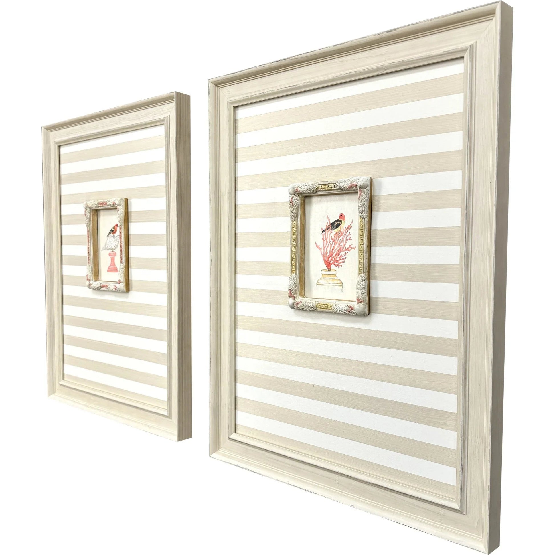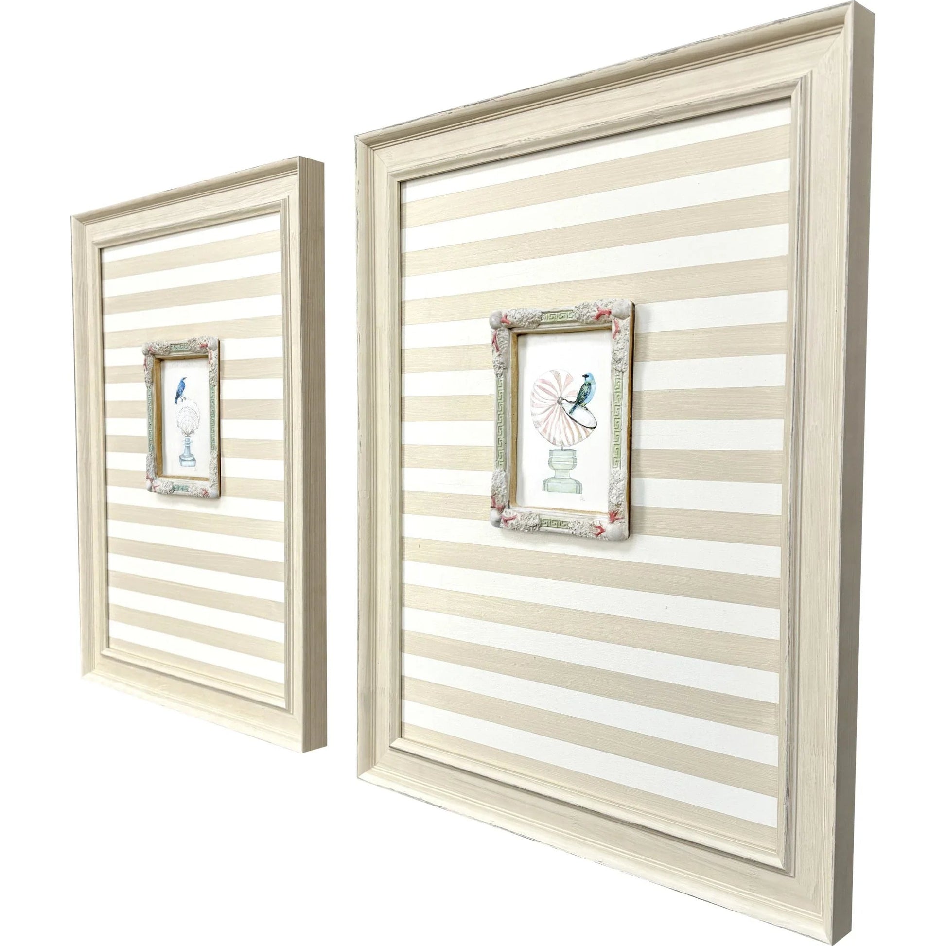 Framed in an elegant ivory wood, these artworks exude sophistication while maintaining a natural aesthetic. The absence of glass in the frame allows the intricate details to be fully appreciated, further enriching the visual experience. Perfect for coastal-themed interiors, these artworks can complement a variety of home decors. The combination of paper, wood, and plaster materials ensures durability and longevity, making this set a valuable addition to your art collection.