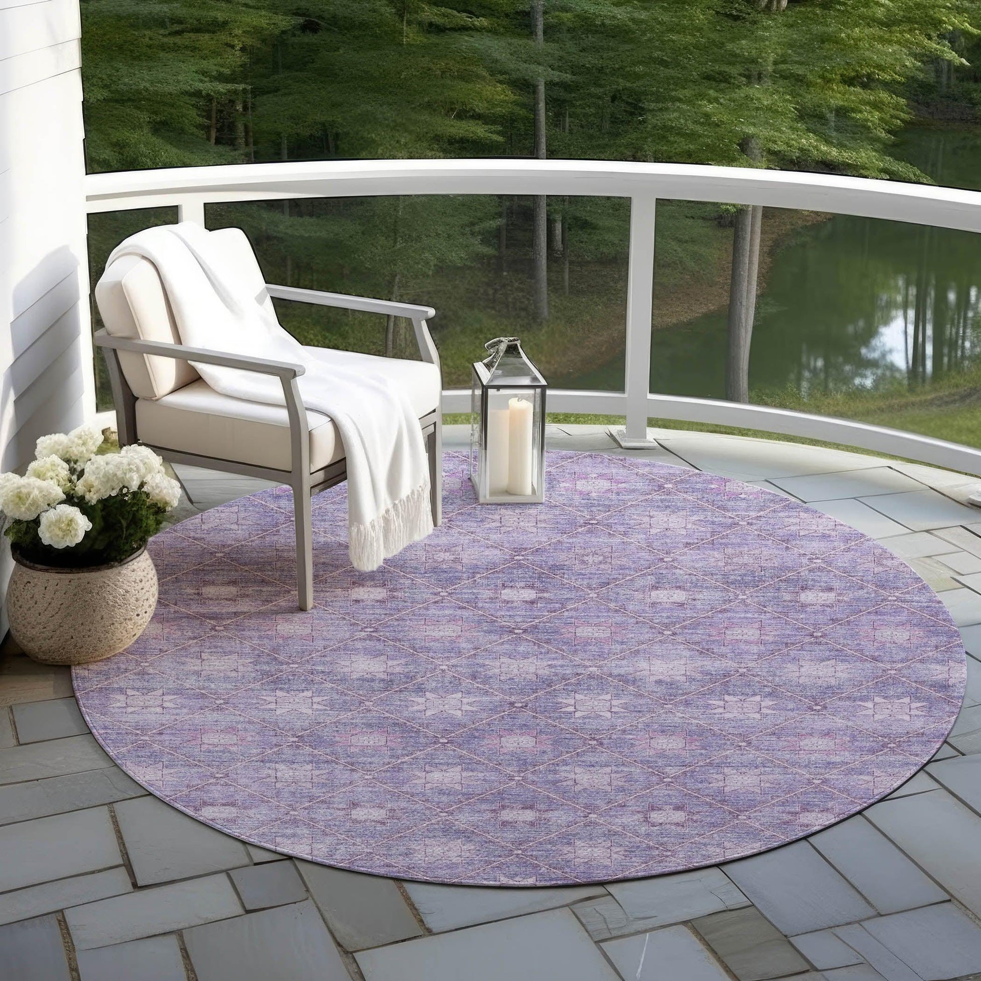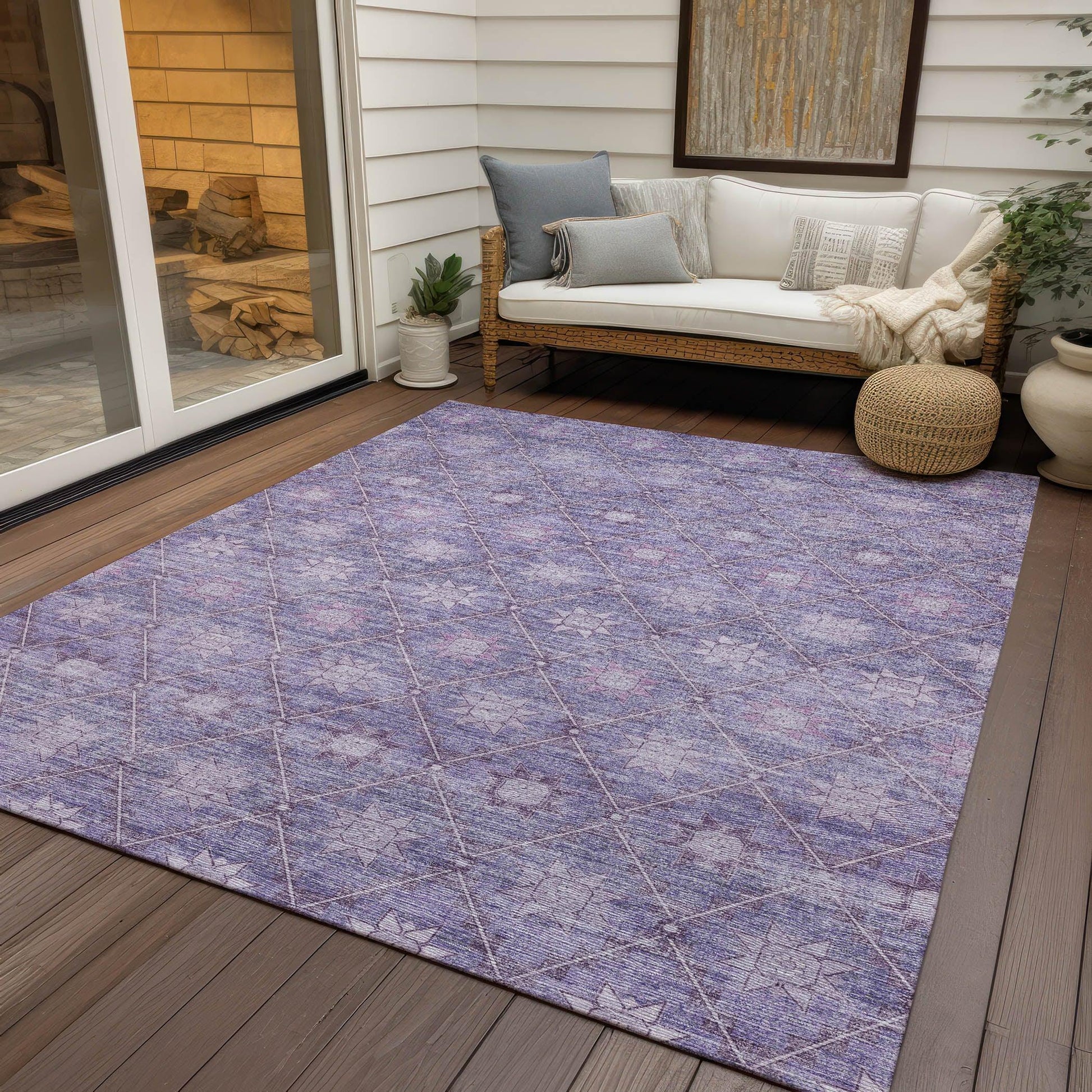 Add a touch of contemporary allure to any space with the Uraas Purple Washable Rug. This transitional rug features a striking lattice pattern with eye-catching star motifs, making it a standout piece in any room. Its rich purple color adds vibrancy, while the durable polyester material ensures longevity. This rug is designed to fit seamlessly into both indoor and outdoor settings, thanks to its UV stabilization, which helps maintain its color when exposed to sunlight.
