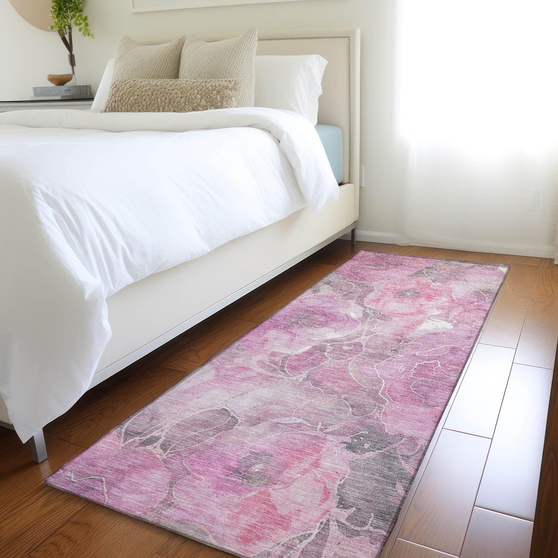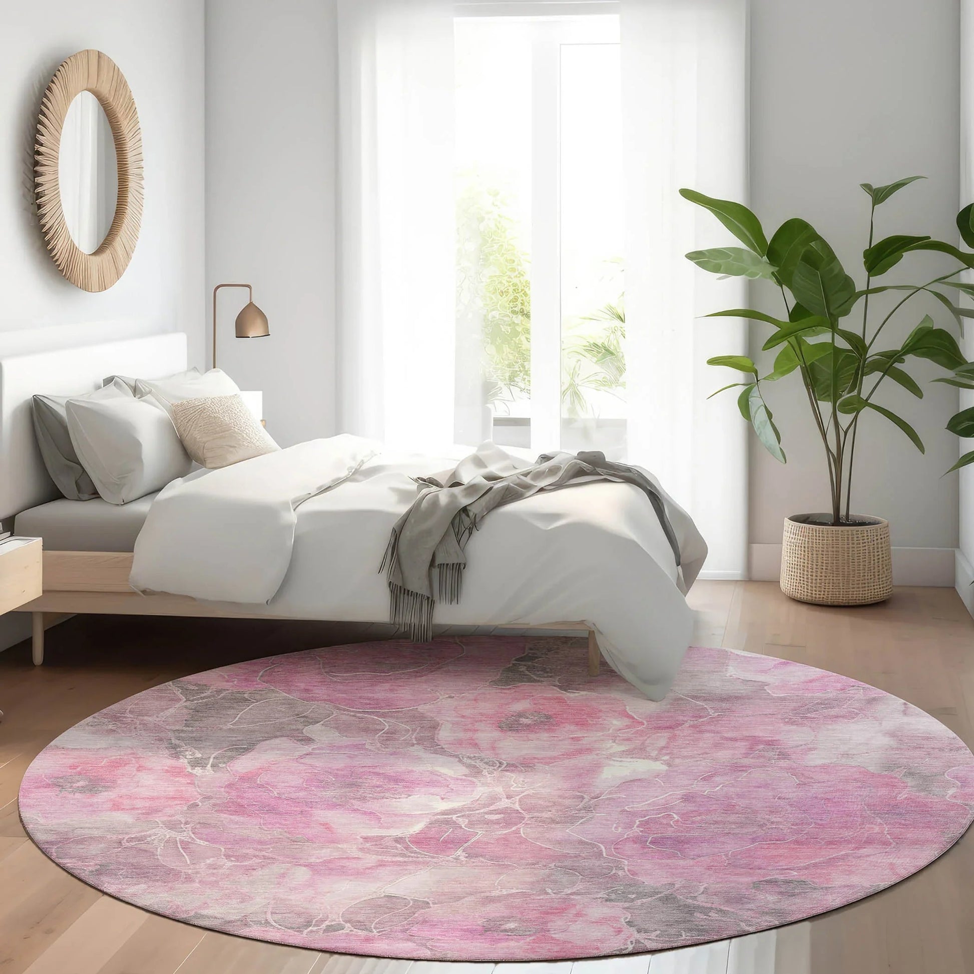 The Uraien Pink Washable Rug brings a fresh look to any living space with its transitional floral design, featuring abstract rose patterns and a captivating shadow effect. This rug is perfect for both indoor and outdoor environments, thanks to its UV stabilization, which helps maintain its vibrant color even when exposed to sunlight. Made from durable polyester, this rug is ideal for families and pet owners as it is machine washable, ensuring easy maintenance and longevity.