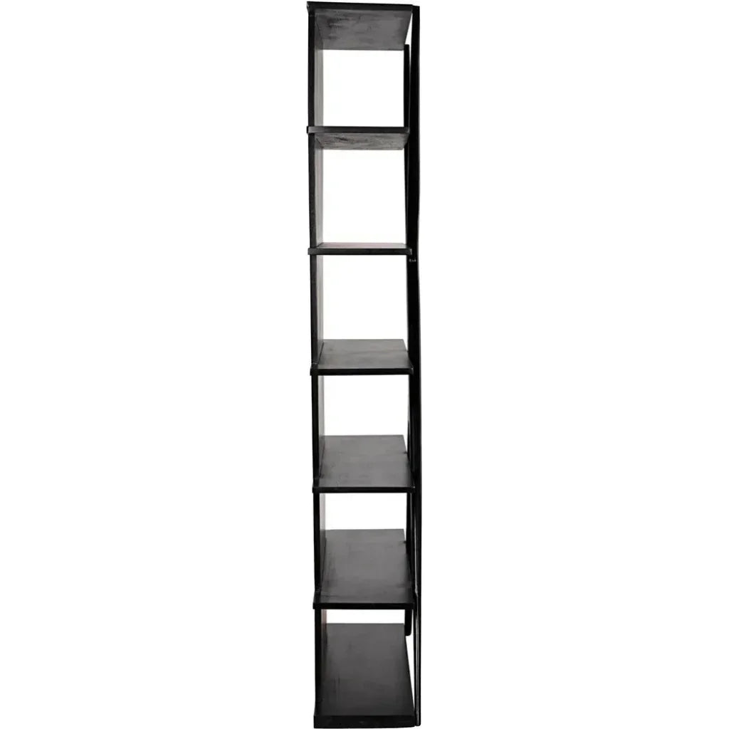 Strikingly carved with an intricate cage-like design, the Vetra Bookcase from Noir is a remarkable statement piece available in two distinct finishes. The hand-rubbed black version showcases a bold, exotic look, while the naturally finished teak option features a prominent “X” motif and clear coat semi-gloss that highlights the beauty of the wood grain. Expertly handcrafted from solid teak, each bookshelf offers a unique blend of untamed elegance and refined artistry, transforming any space with its dramatic structure and impeccable craftsmanship.
