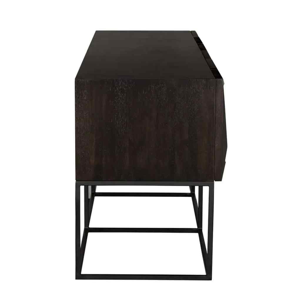 The Zurich Sideboard in Ebony is a standout piece that combines bold style with refined design. Made from walnut, veneer, and iron, it showcases organic textures alongside sleek, modern lines. This extra-long console is ideal for large spaces, whether in entryways or behind oversized sofas. Its rich ebony walnut finish adds a touch of elegance, making it not just a sideboard, but a statement piece. The black color further enhances its sophisticated look, fitting seamlessly into contemporary interiors. With its impressive build and striking appearance, it’s perfect for those looking to add a touch of luxury and functionality to their home.